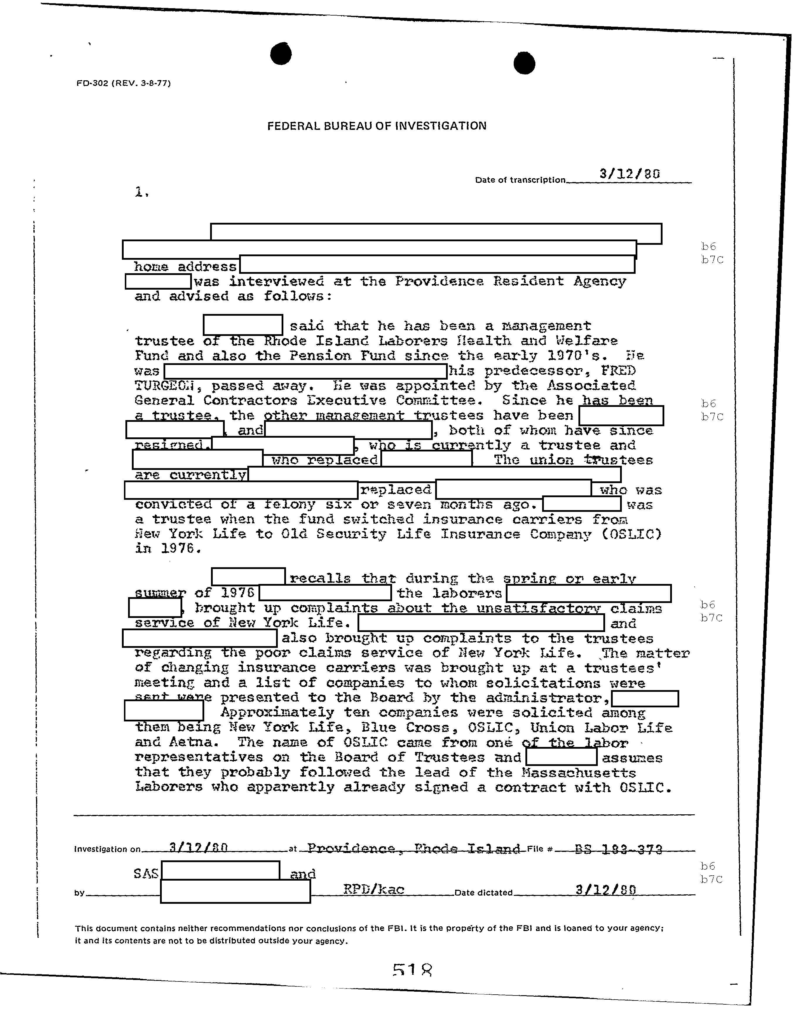FBI Files - The Patriarca Papers - Entry 60