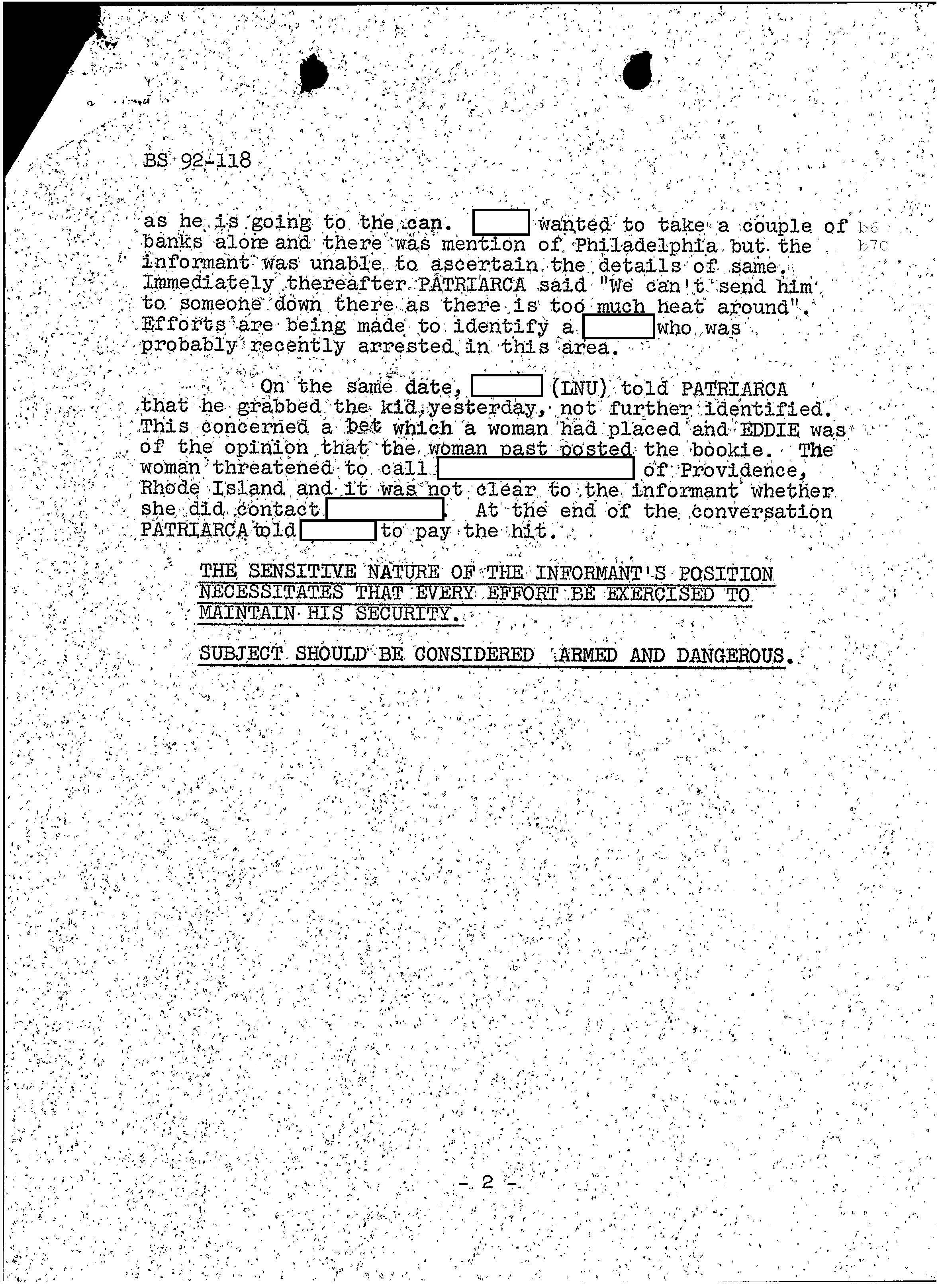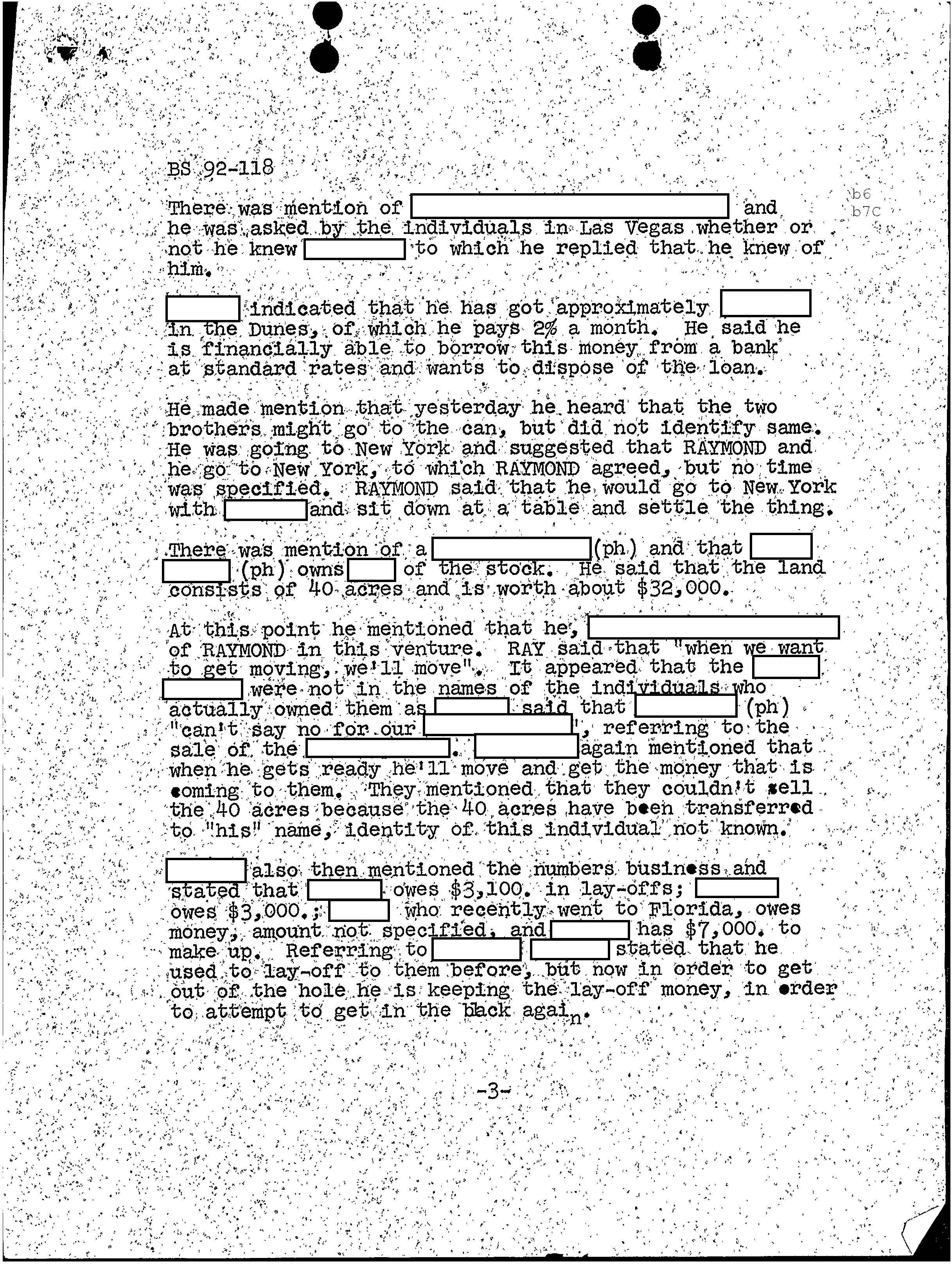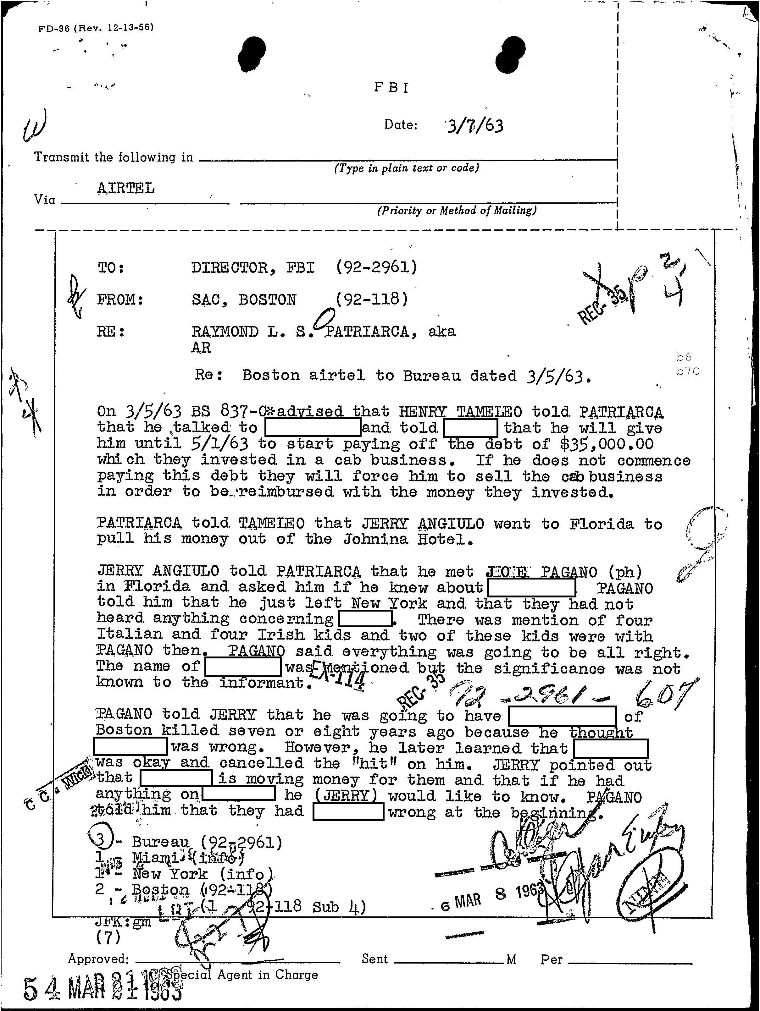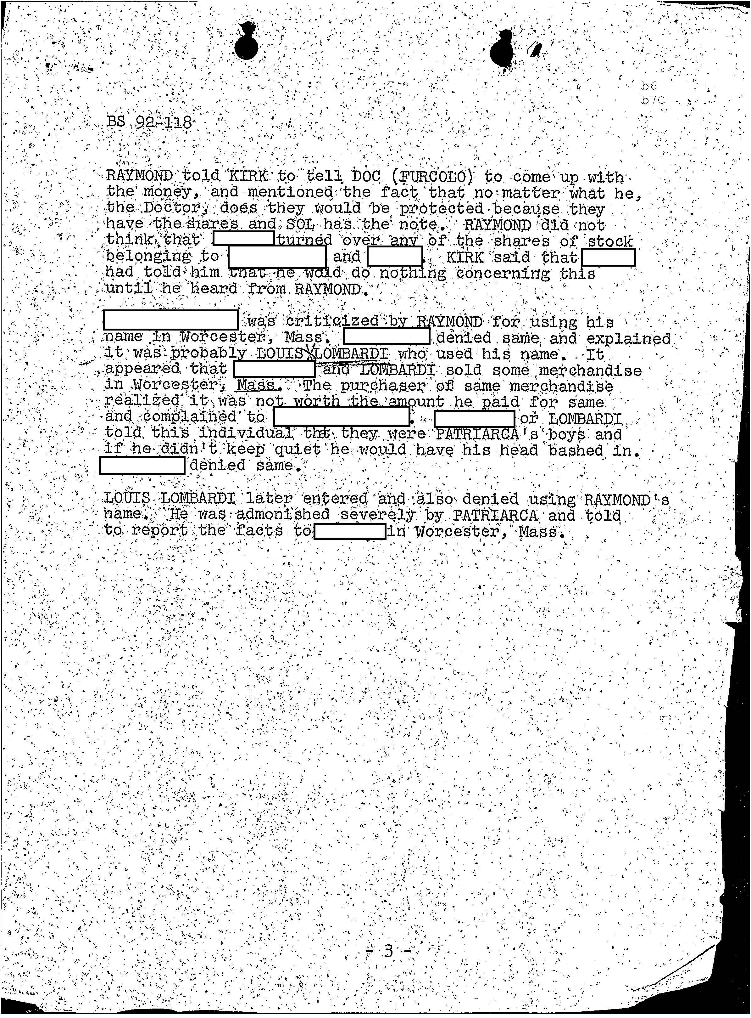FBI Files - The Patriarca Papers - Entry 29 (Patriarca Claims He Paid Off Senator Pastore)
