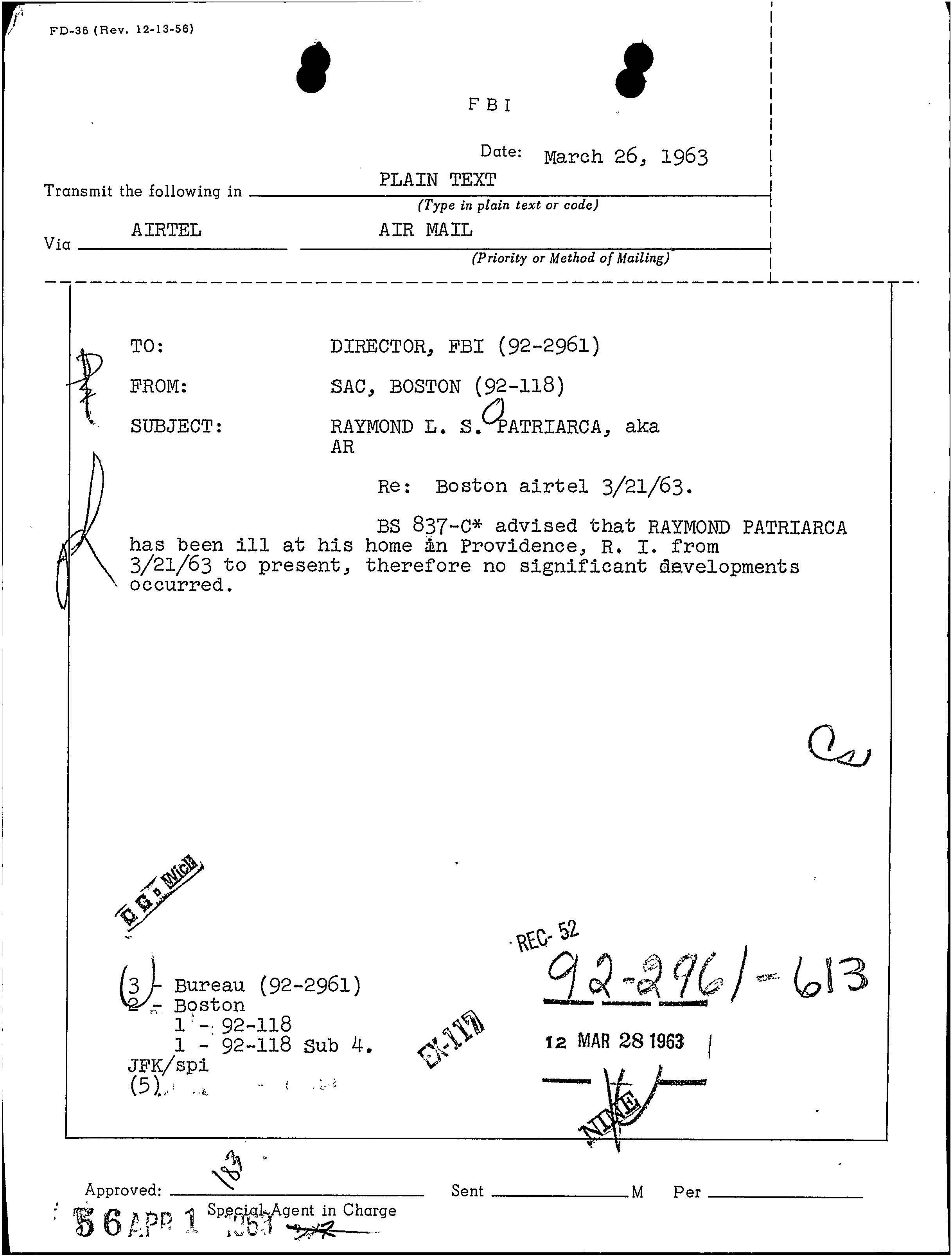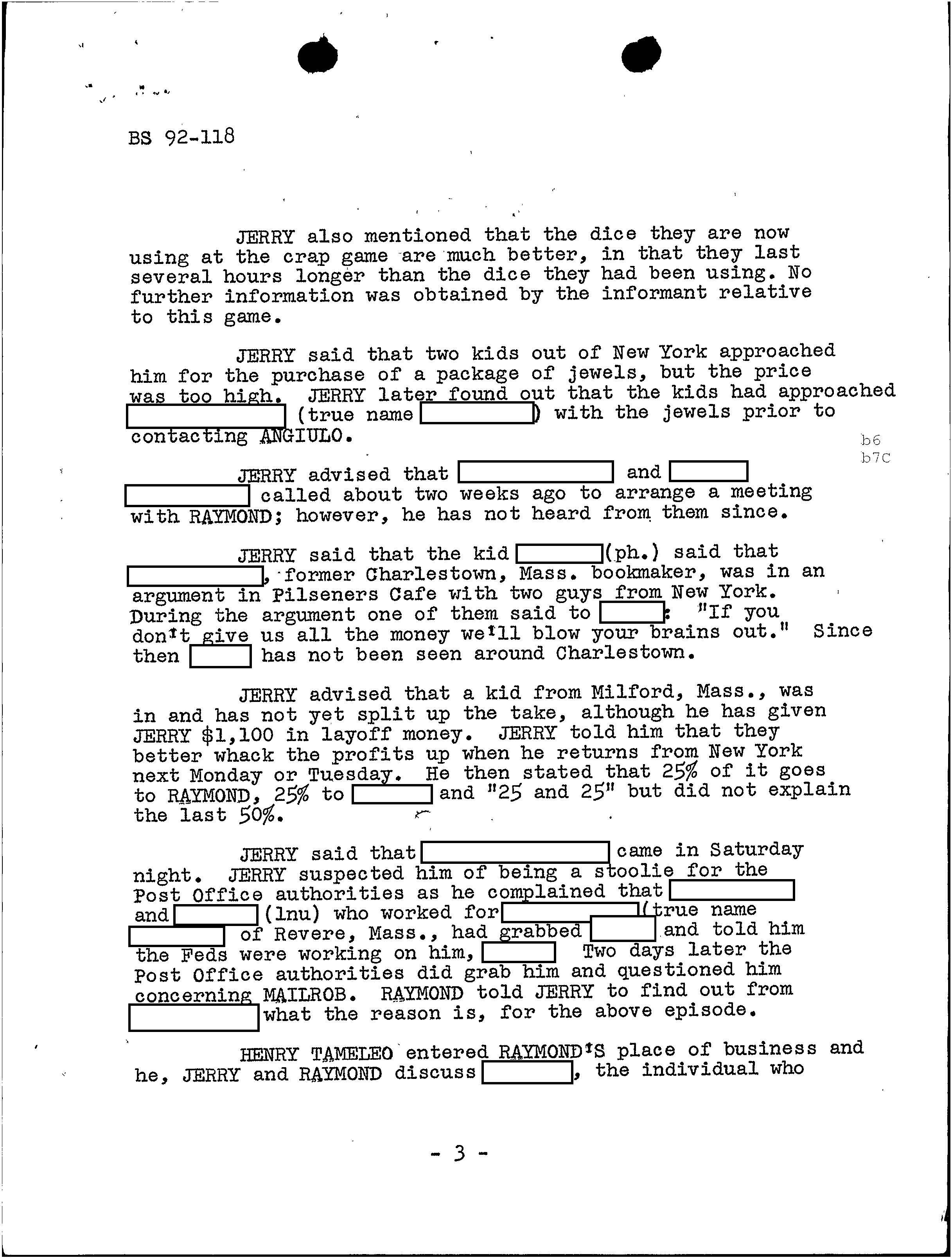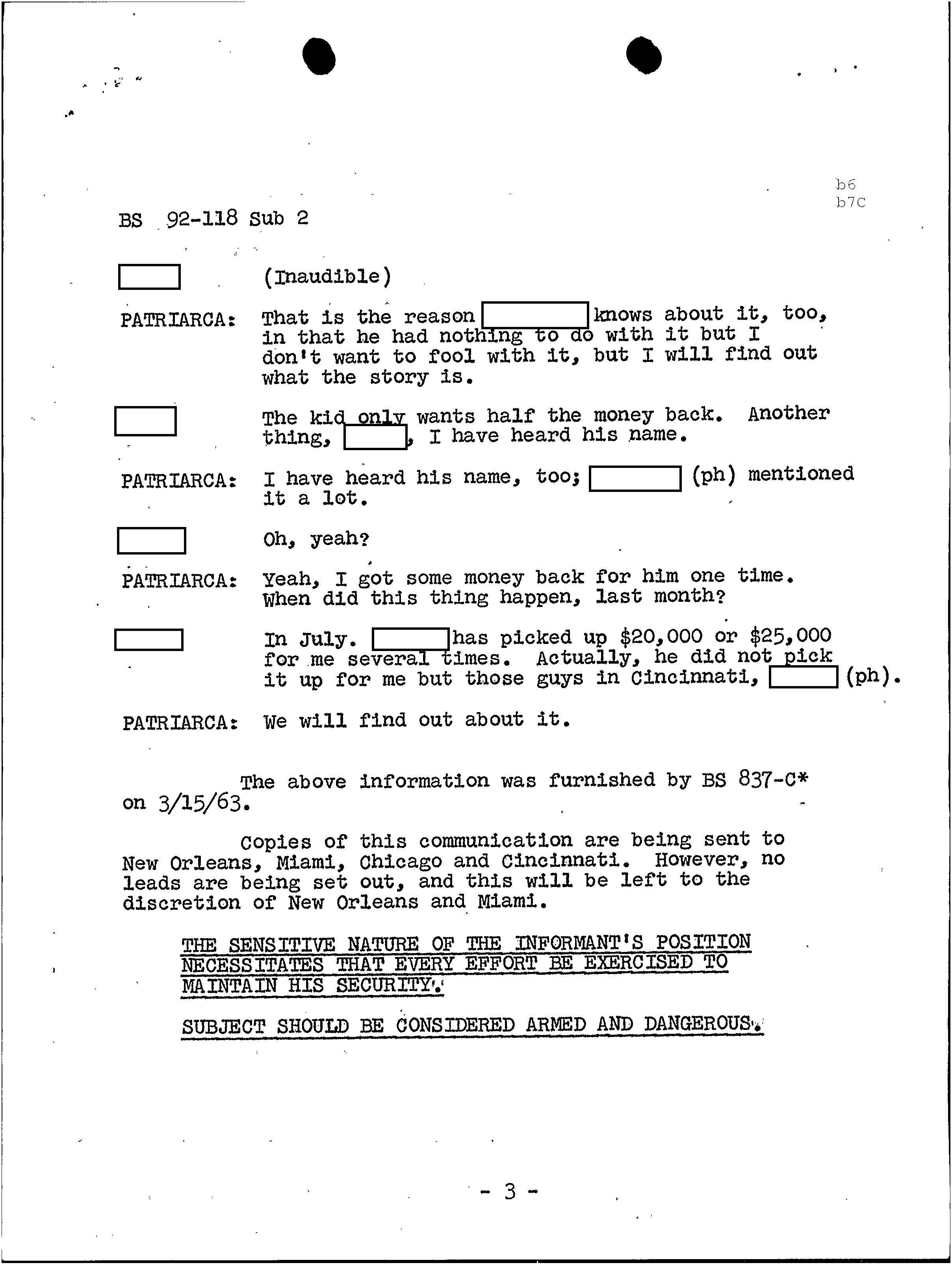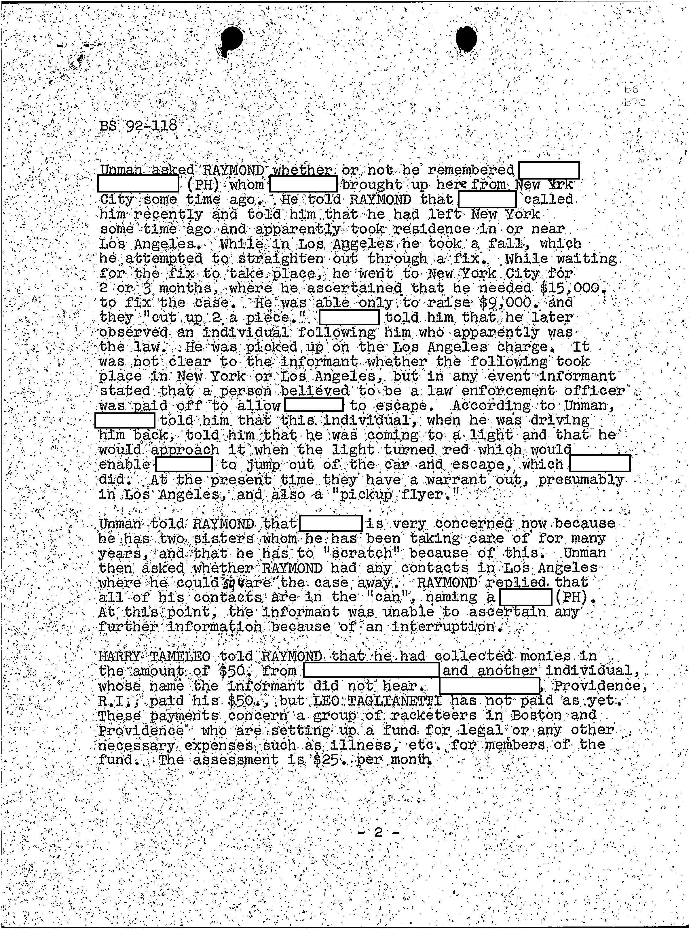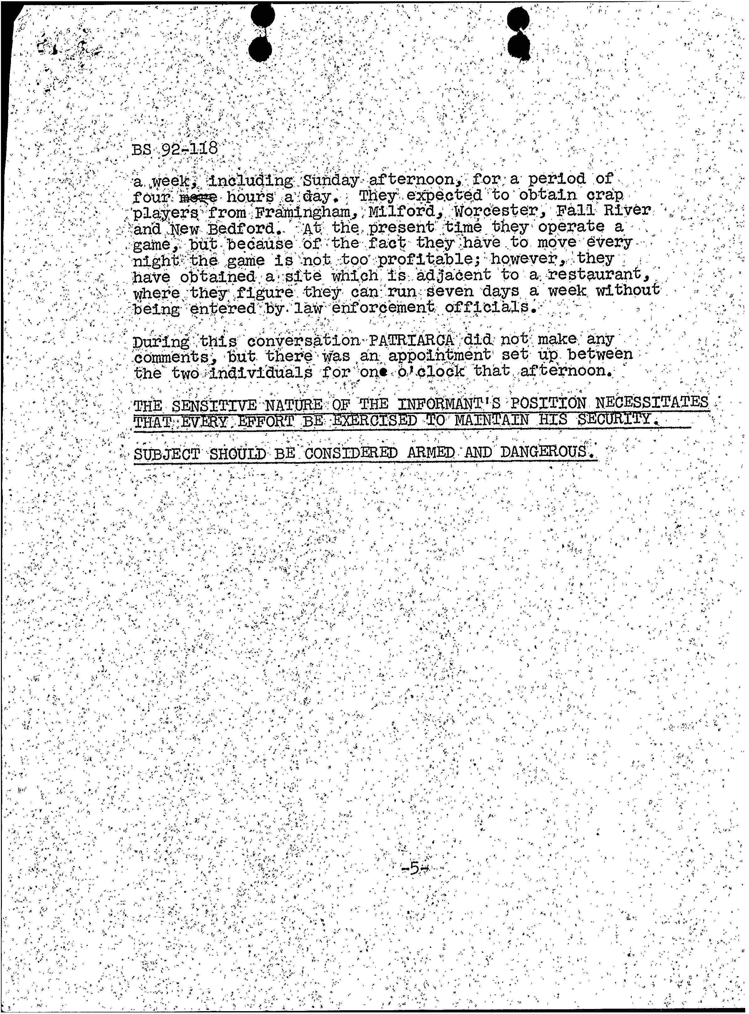 FBI Files - The Patriarca Papers - Entry 29 (Patriarca Claims He Paid Off Senator Pastore)