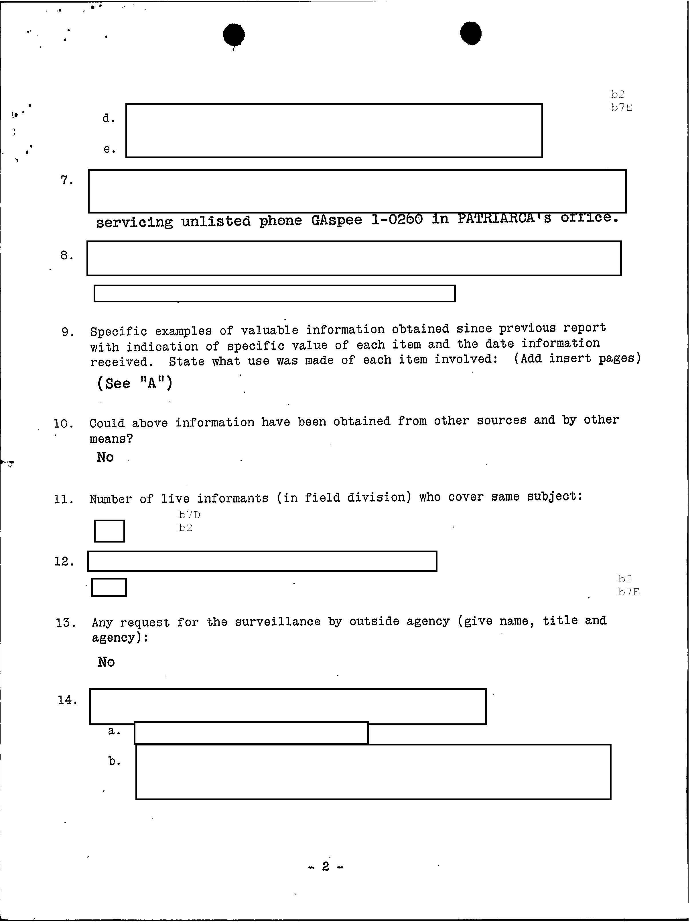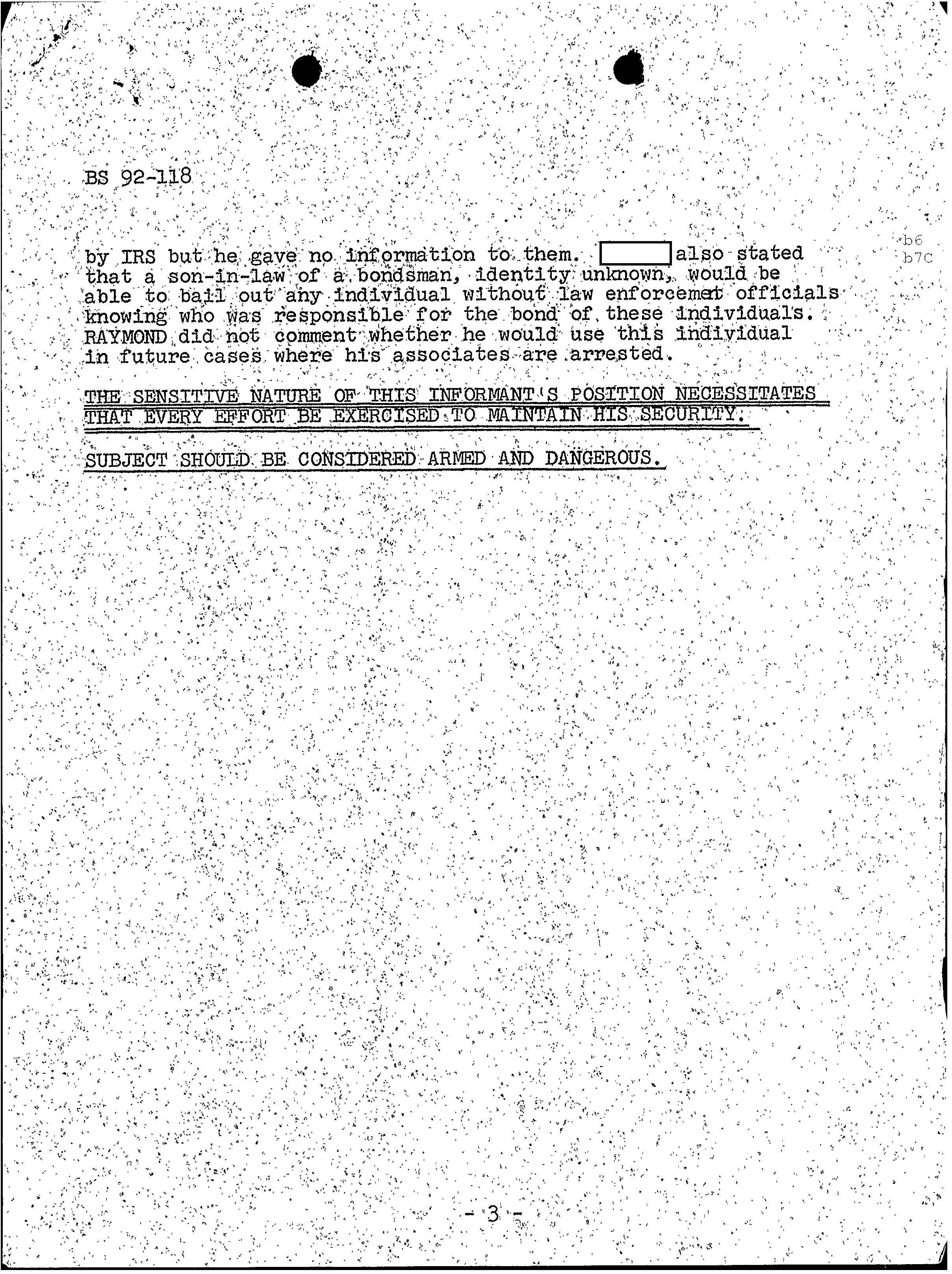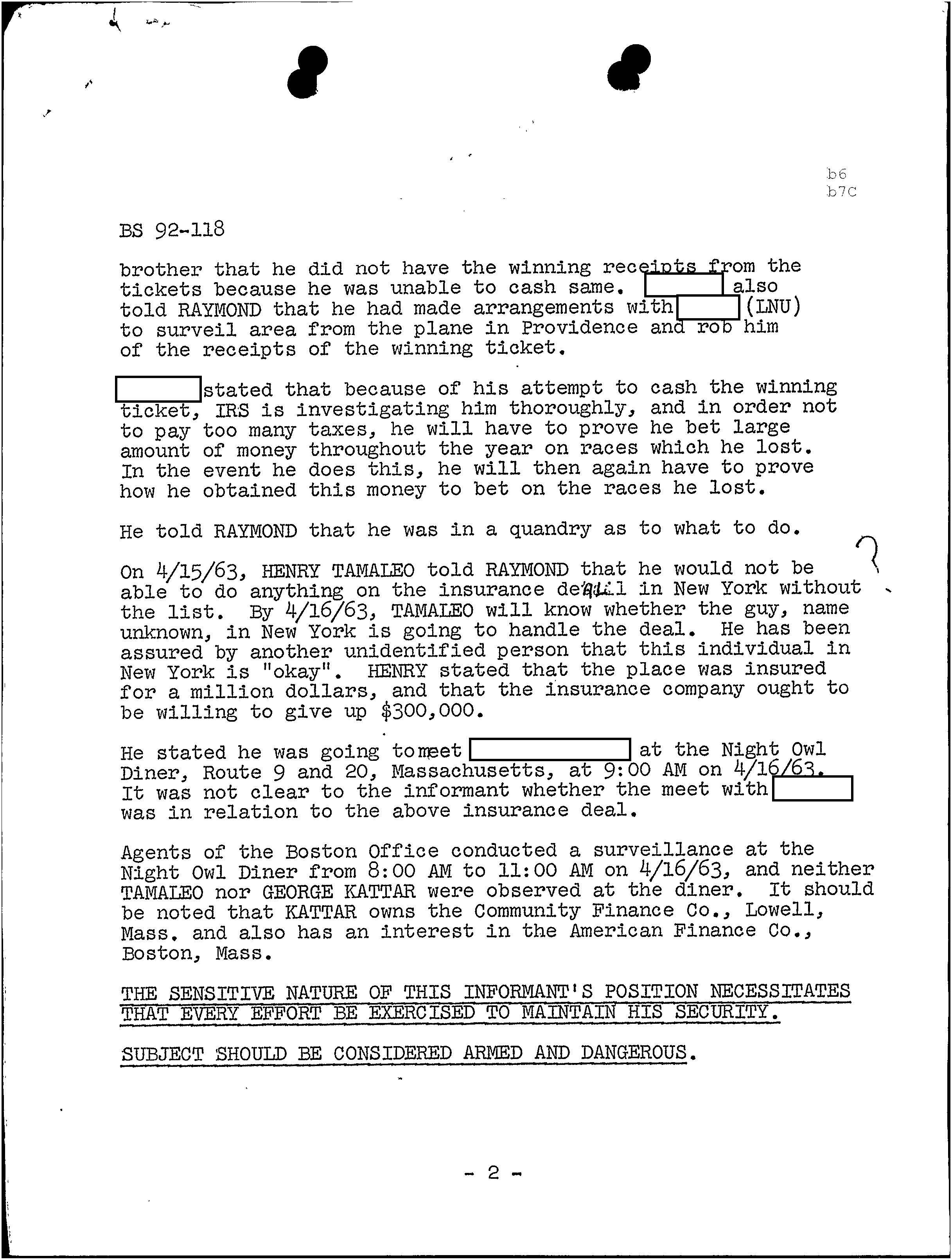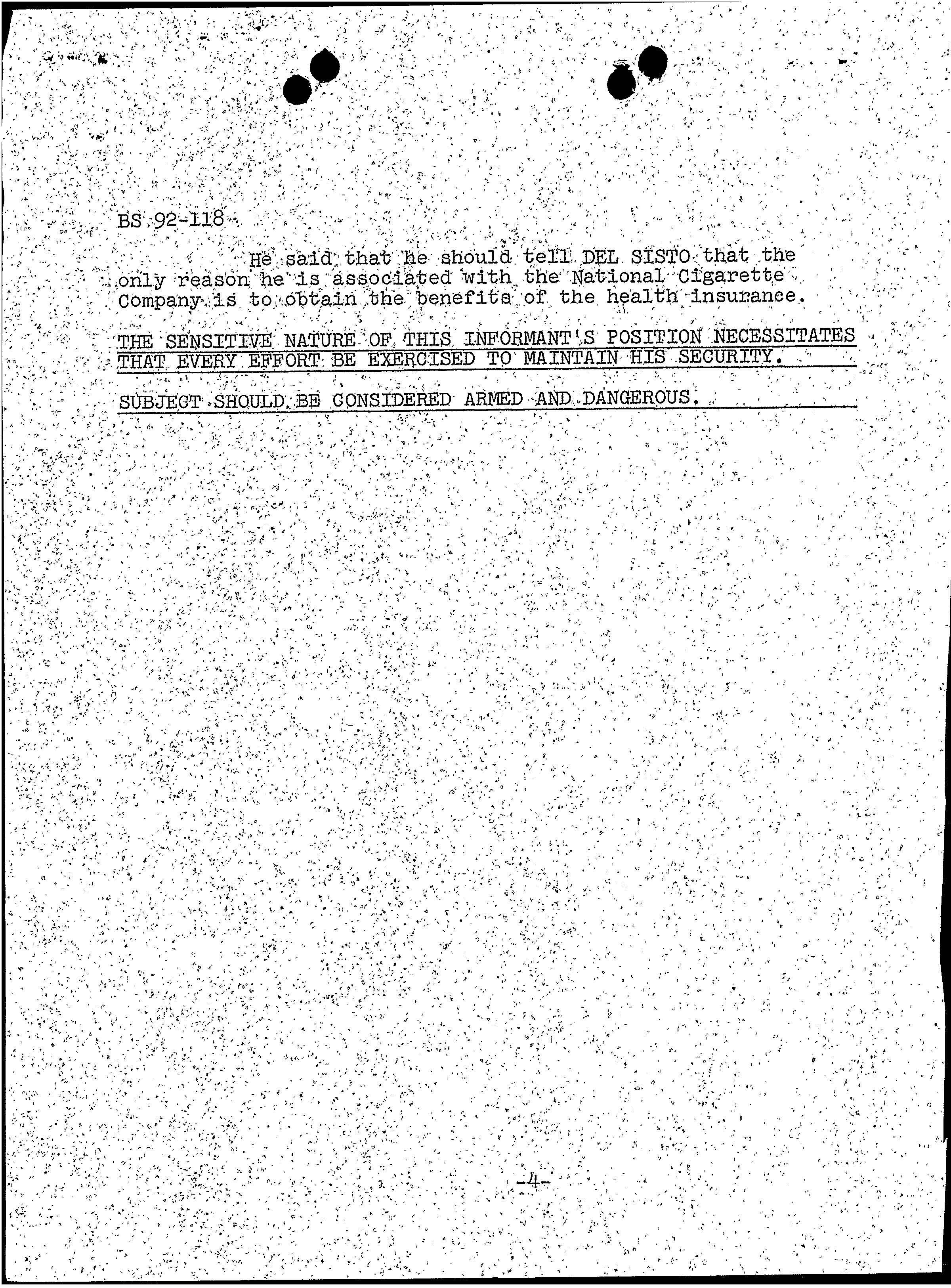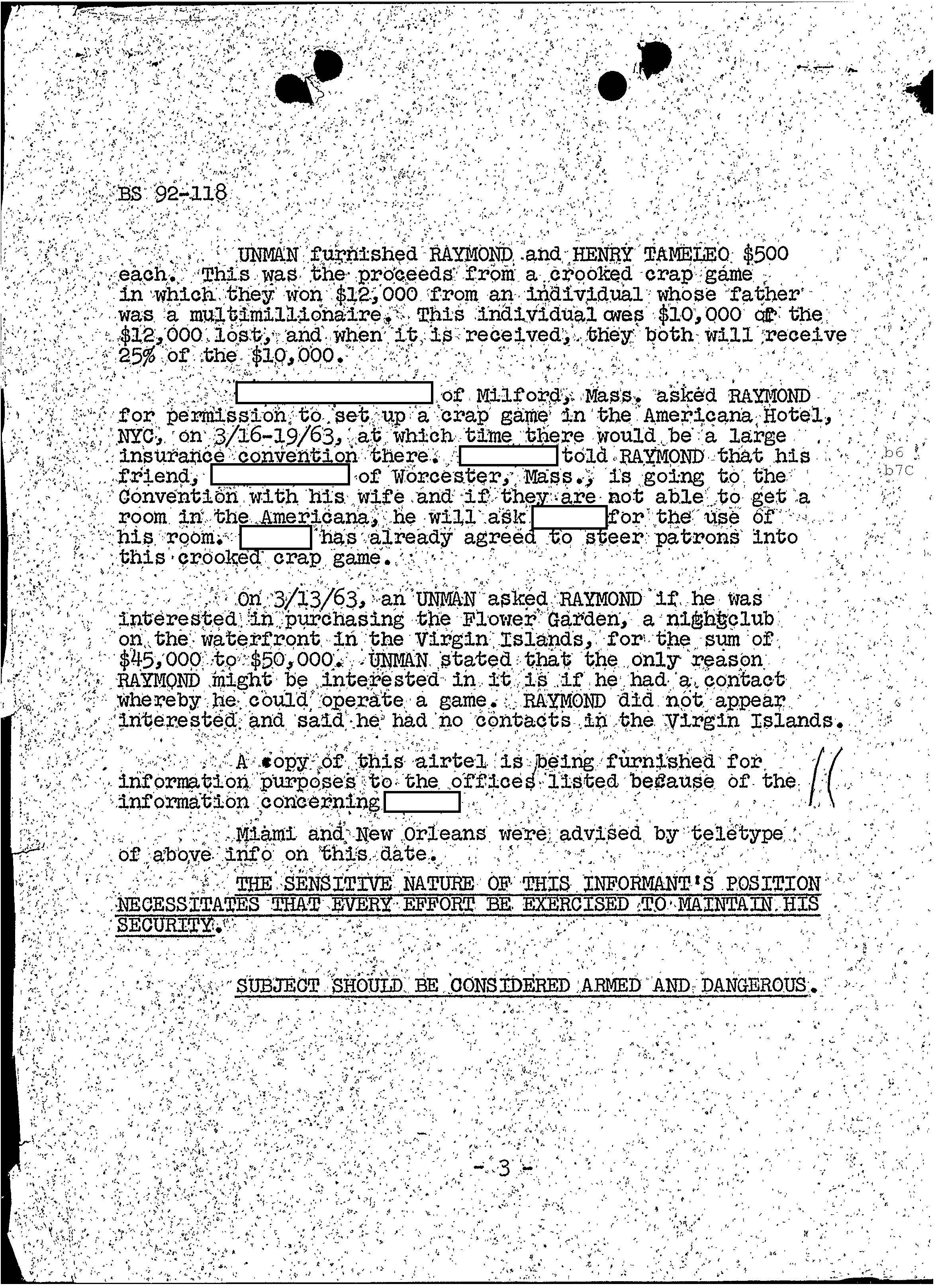 FBI Files - The Patriarca Papers - Entry 29 (Patriarca Claims He Paid Off Senator Pastore)