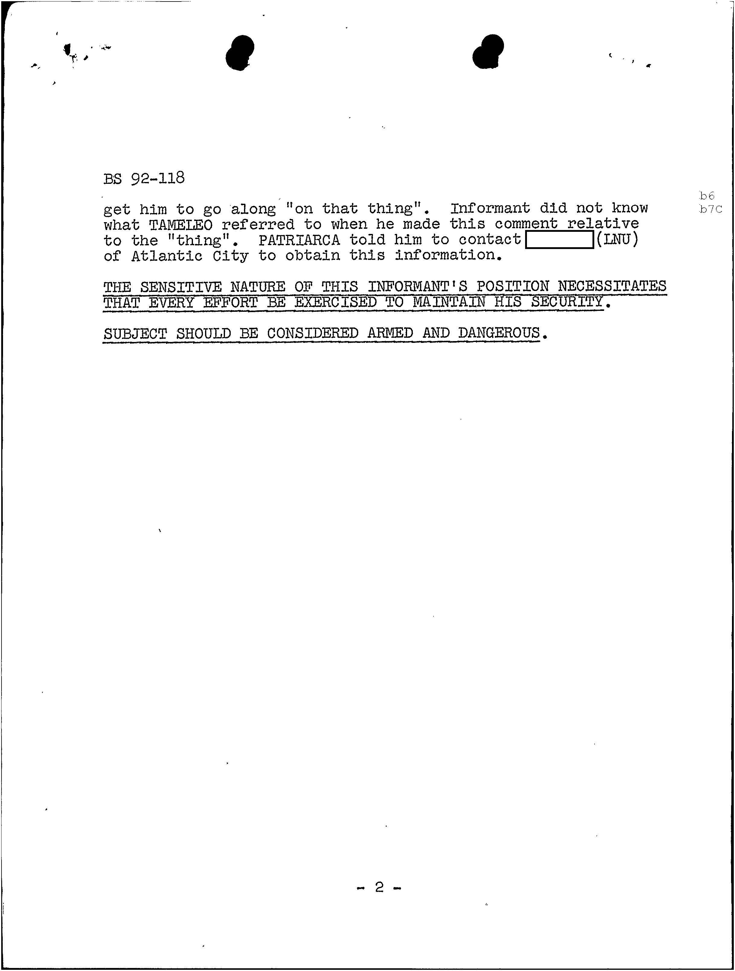 When PATRIARCA and his attorneys were in Washington, D.C., apparently referring to the time he testified before the McClellan Committee, they attempted to see PASTORE in the U.S. Senate Chambers. PASTORE apparently found out they intended to visit him and took a plane to New York before they arrived. PATRIARCA was very critical of PASTORE because of this.