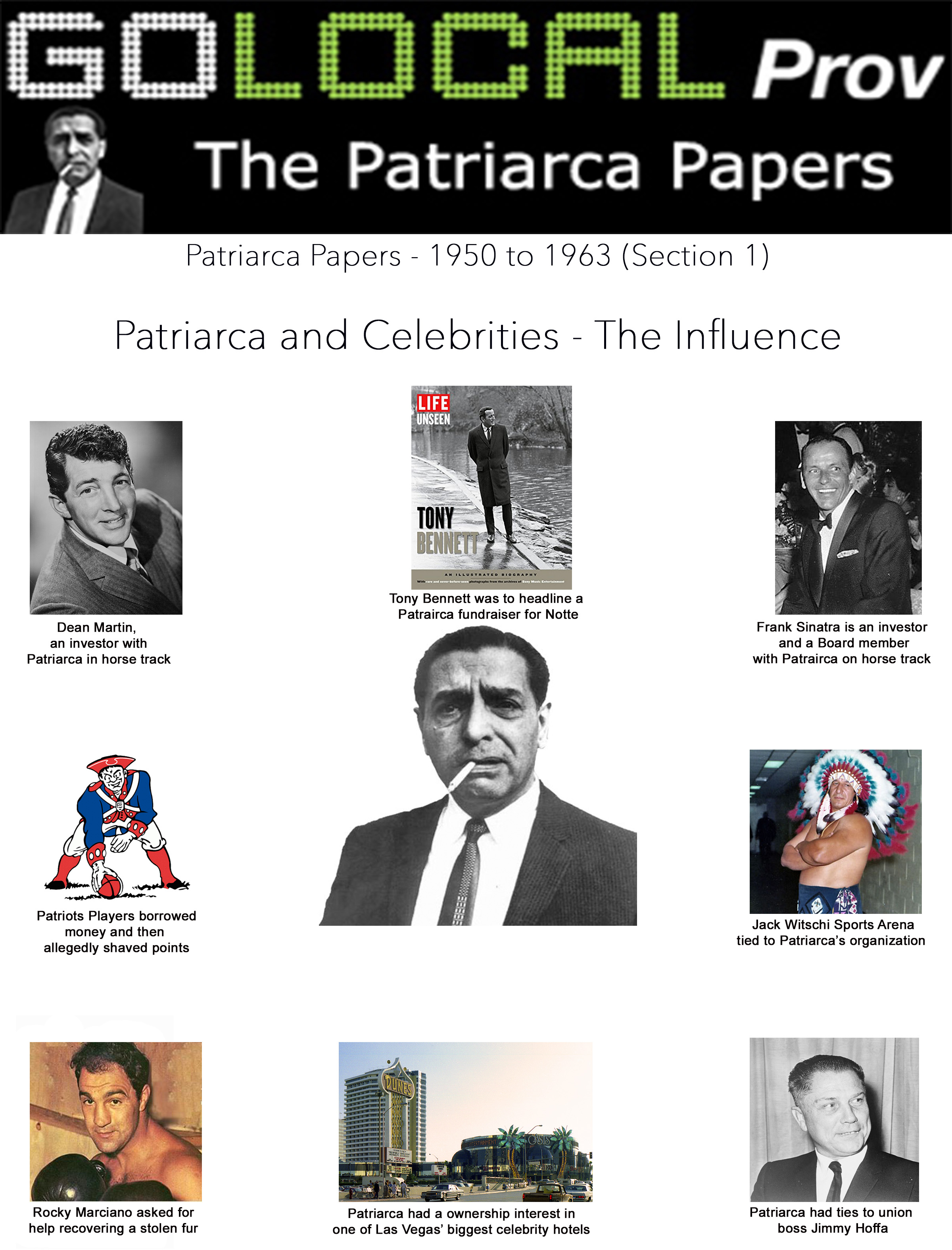 As GoLocal publishes the nearly 10,000 pages of the FBI files of Raymond Patriarca, we will recap elements of the documents - this INFOGRAPHIC unveils the ties between Patriarca and his organization and top celebrities, pro sports and union bosses.