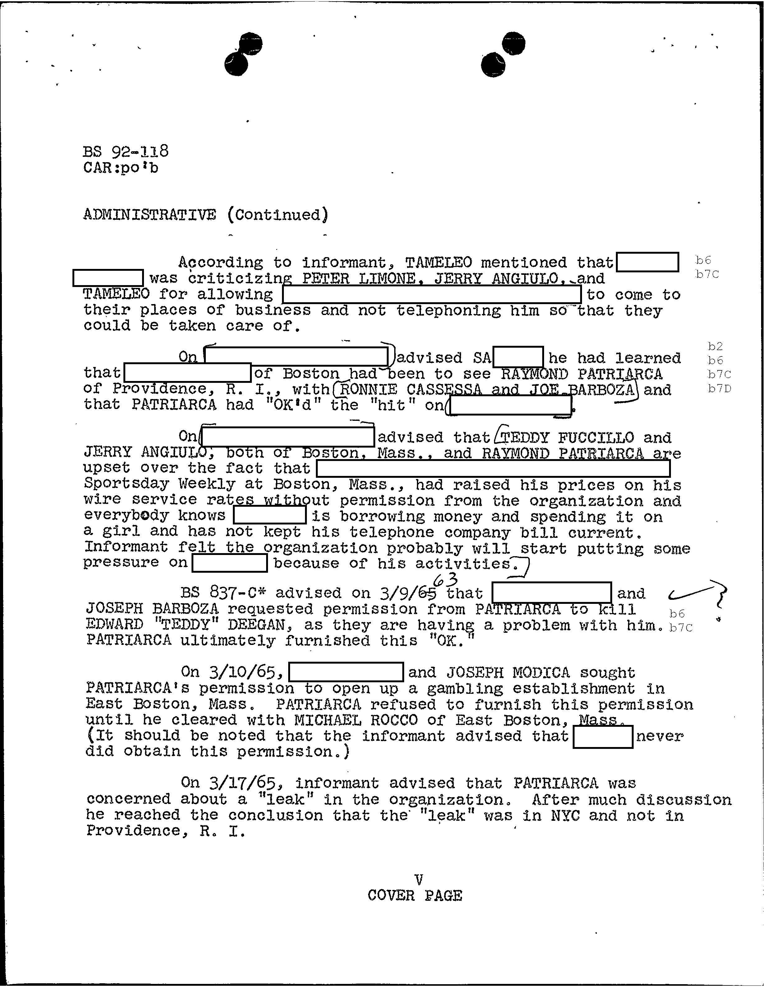 FBI Files - The Patriarca Papers - Entry 45 (How Murders Are Approved)