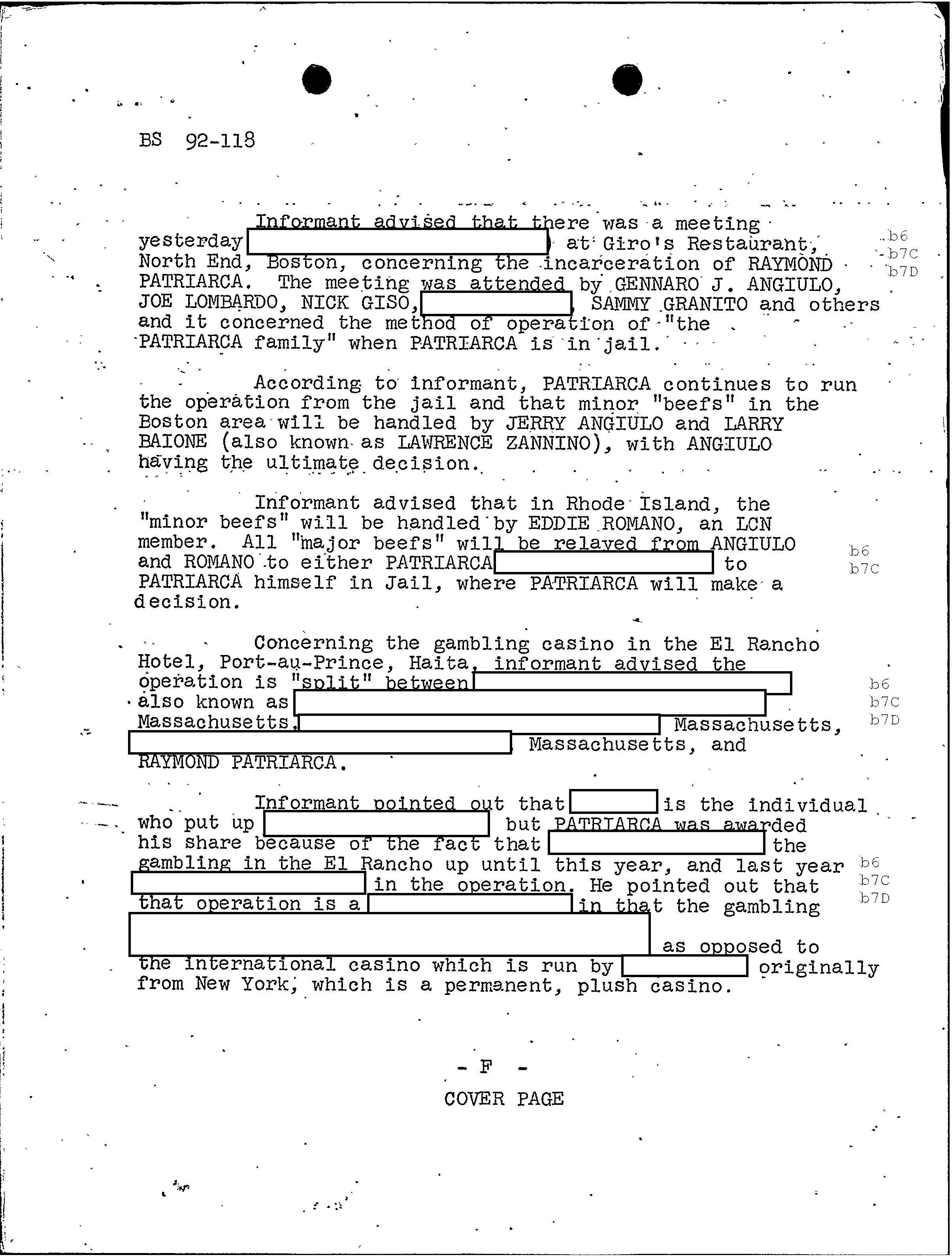 FBI Files - The Patriarca Papers - Entry 47