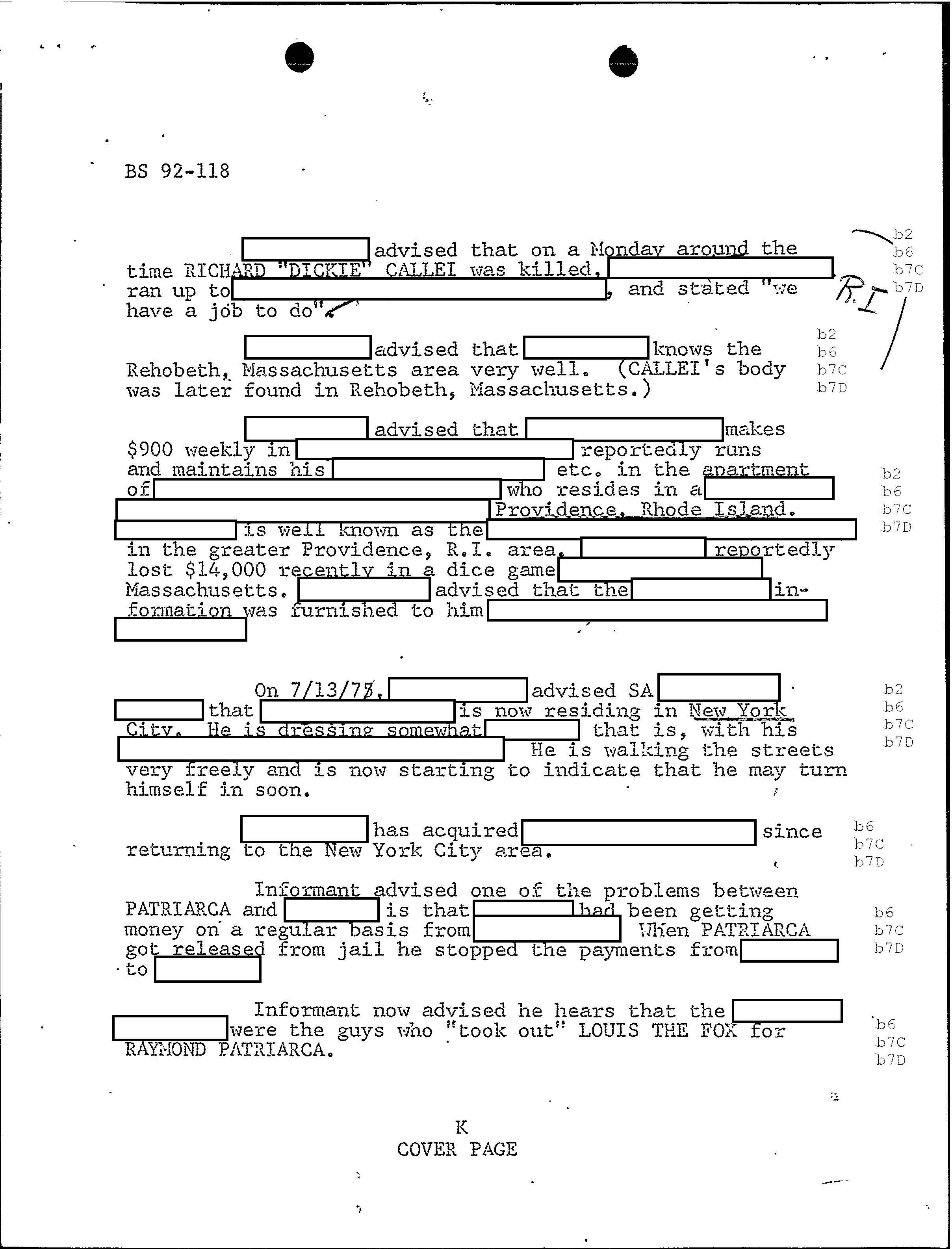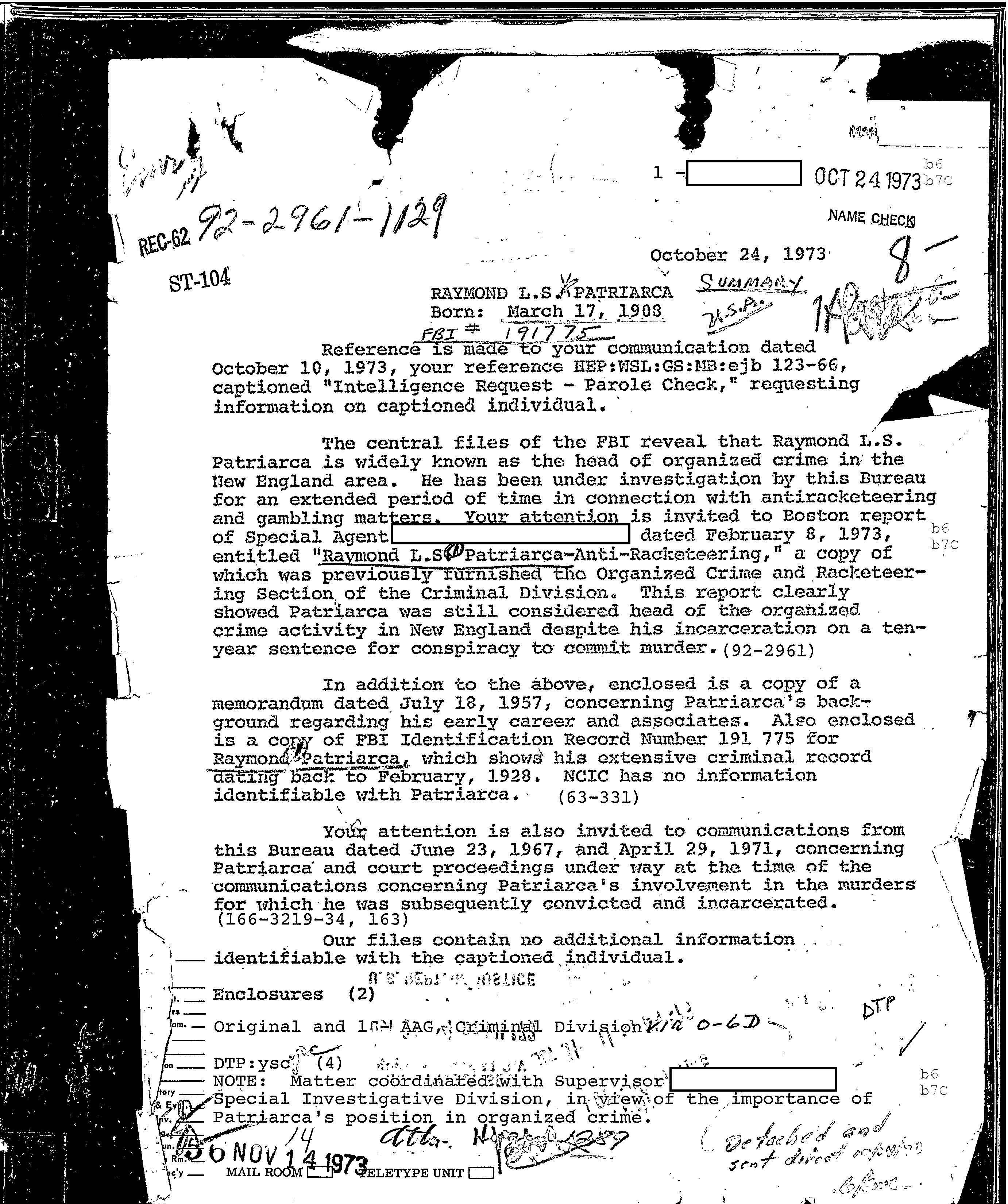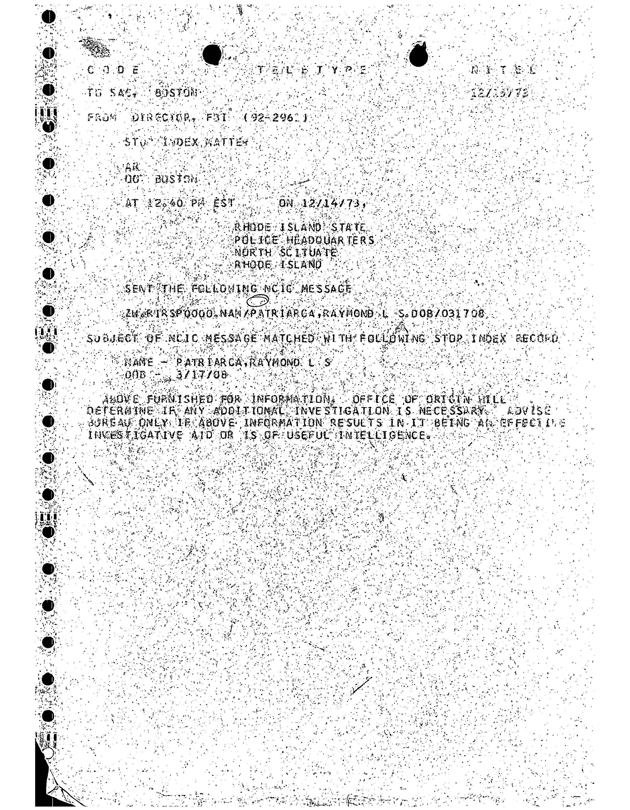 FBI Files - The Patriarca Papers - Entry 49