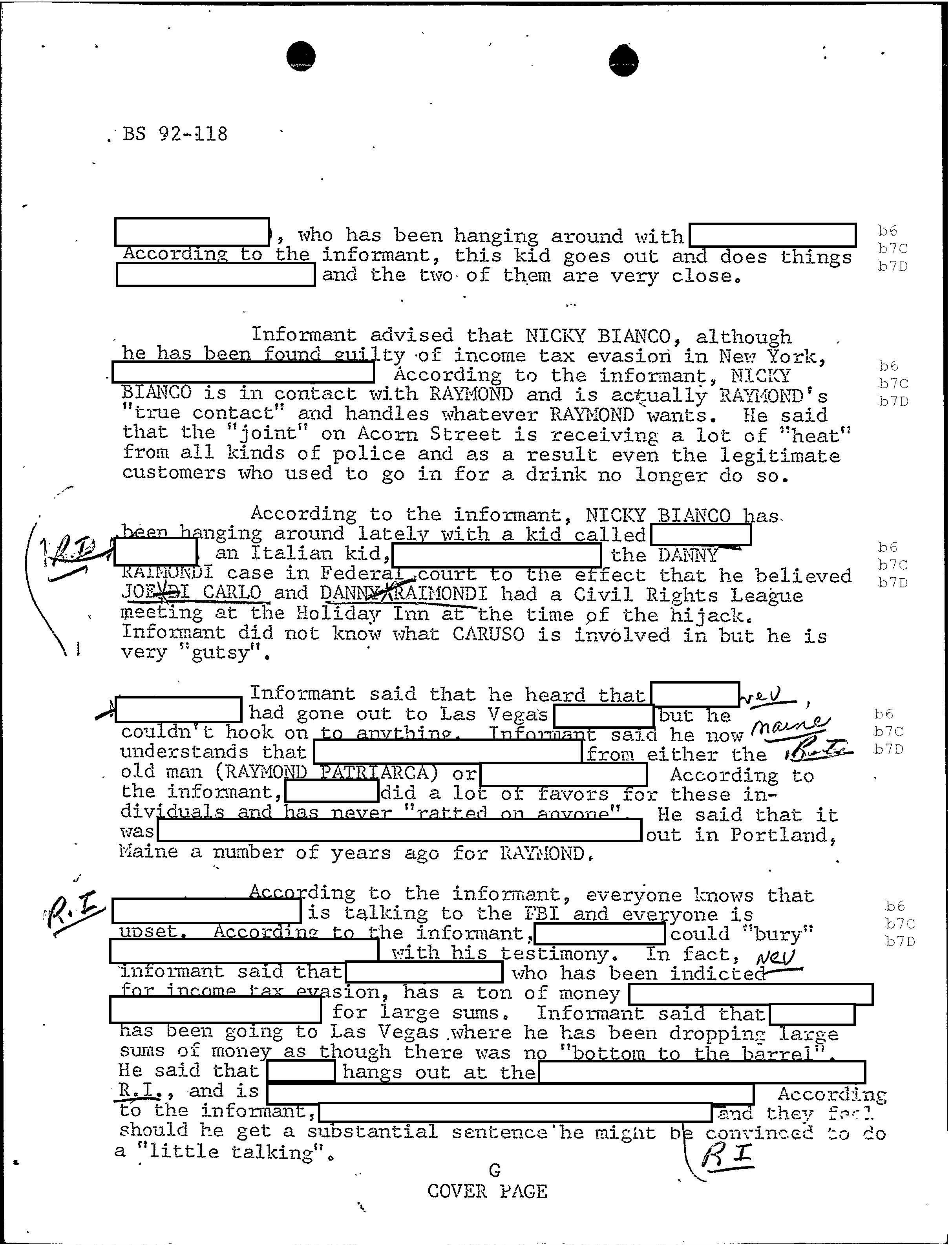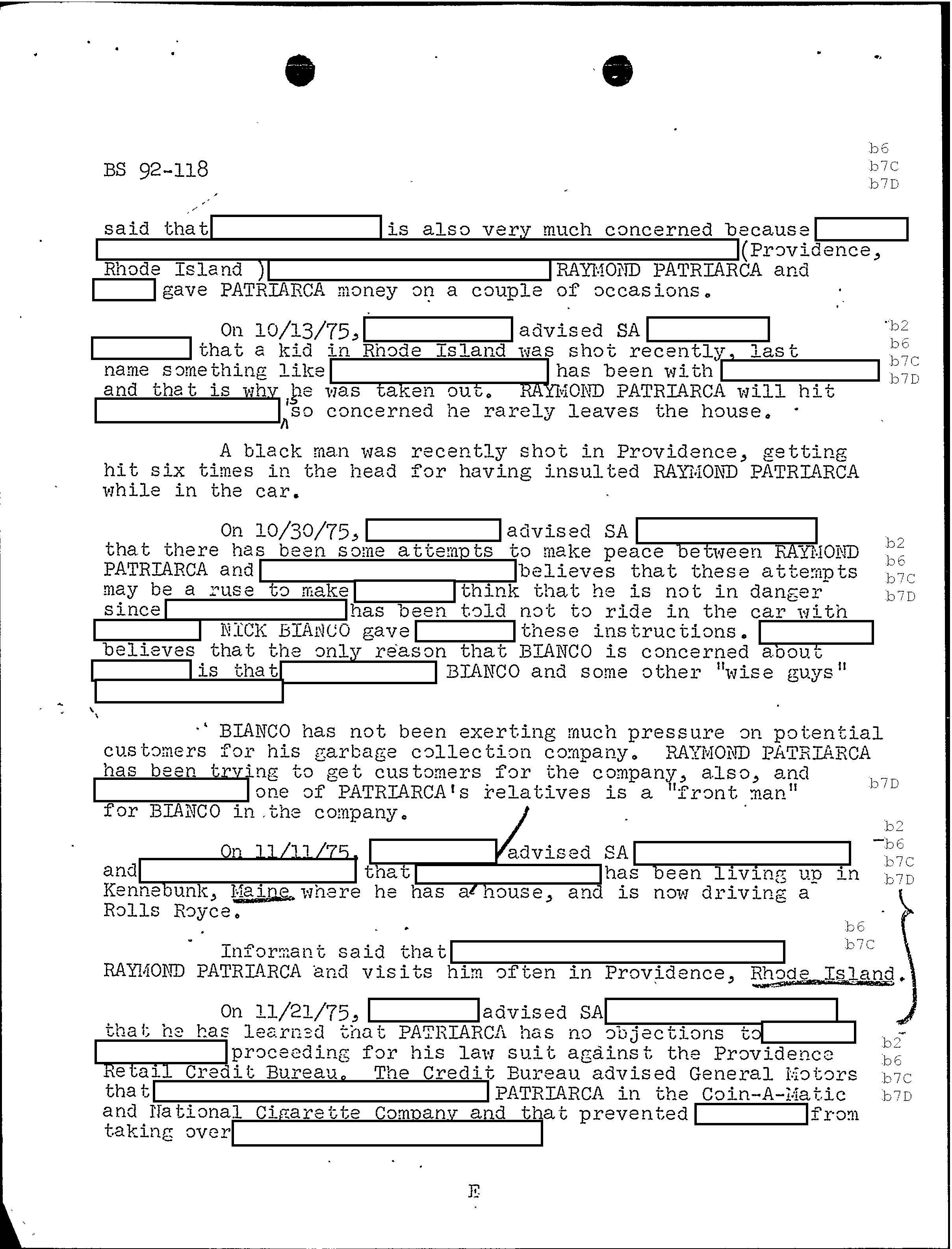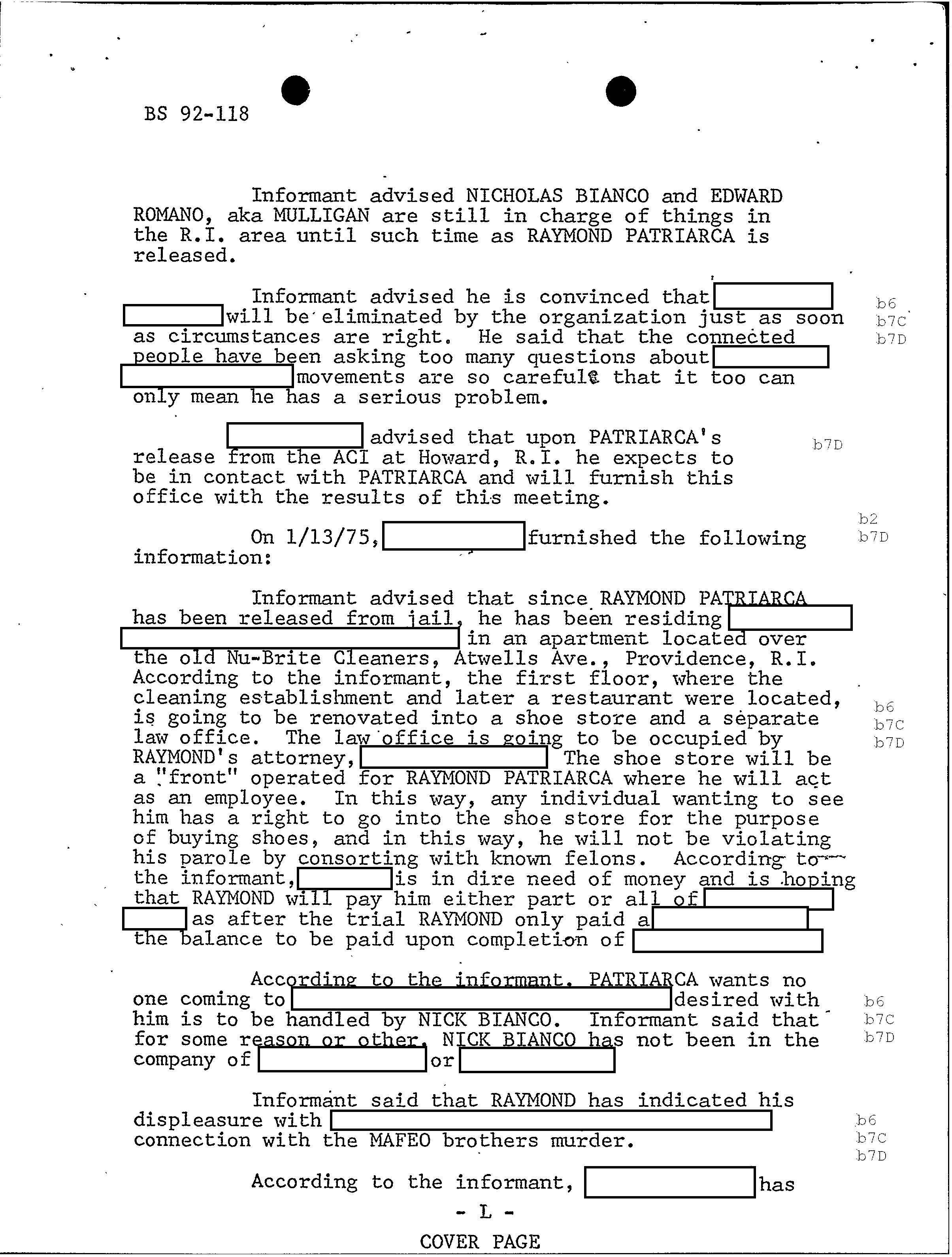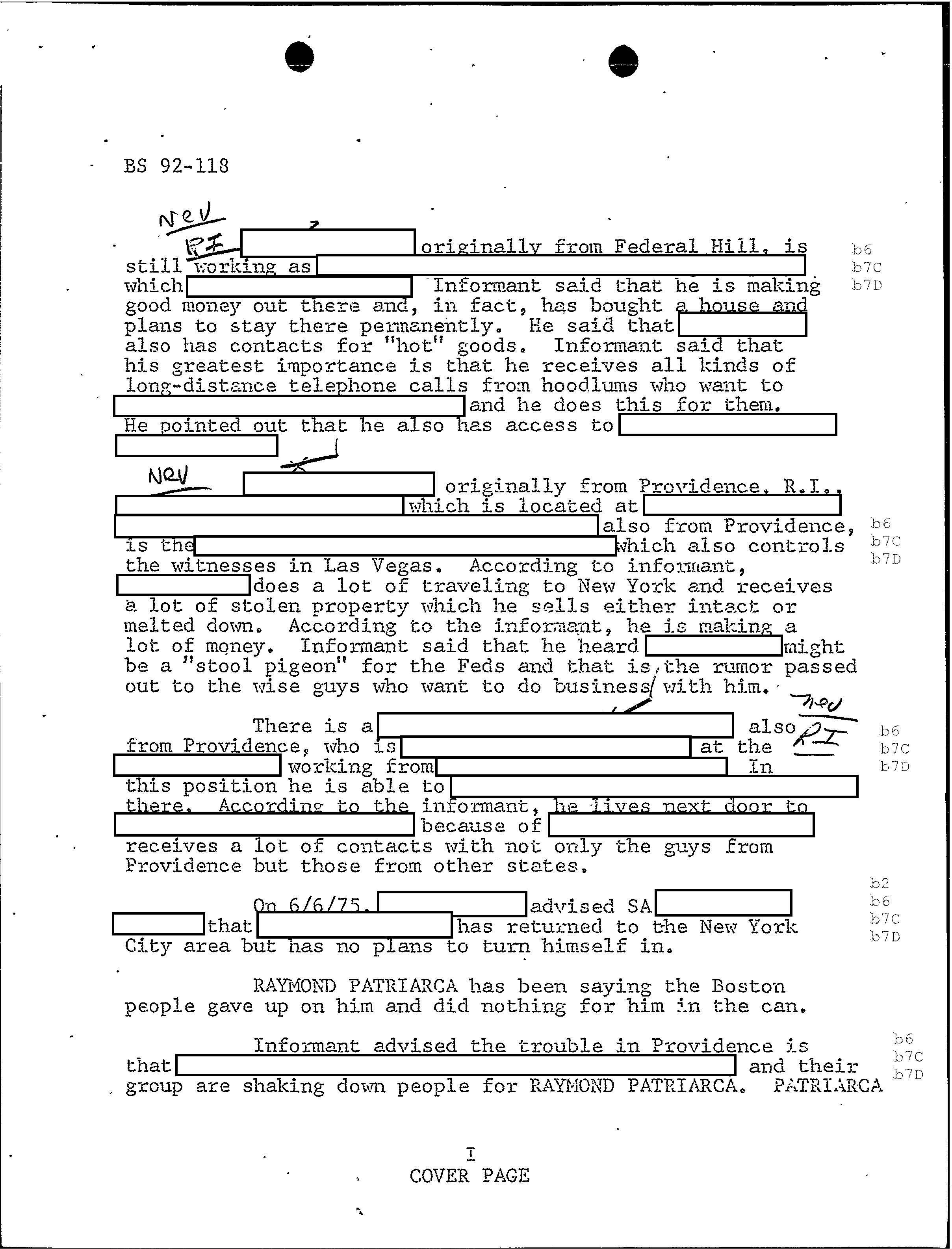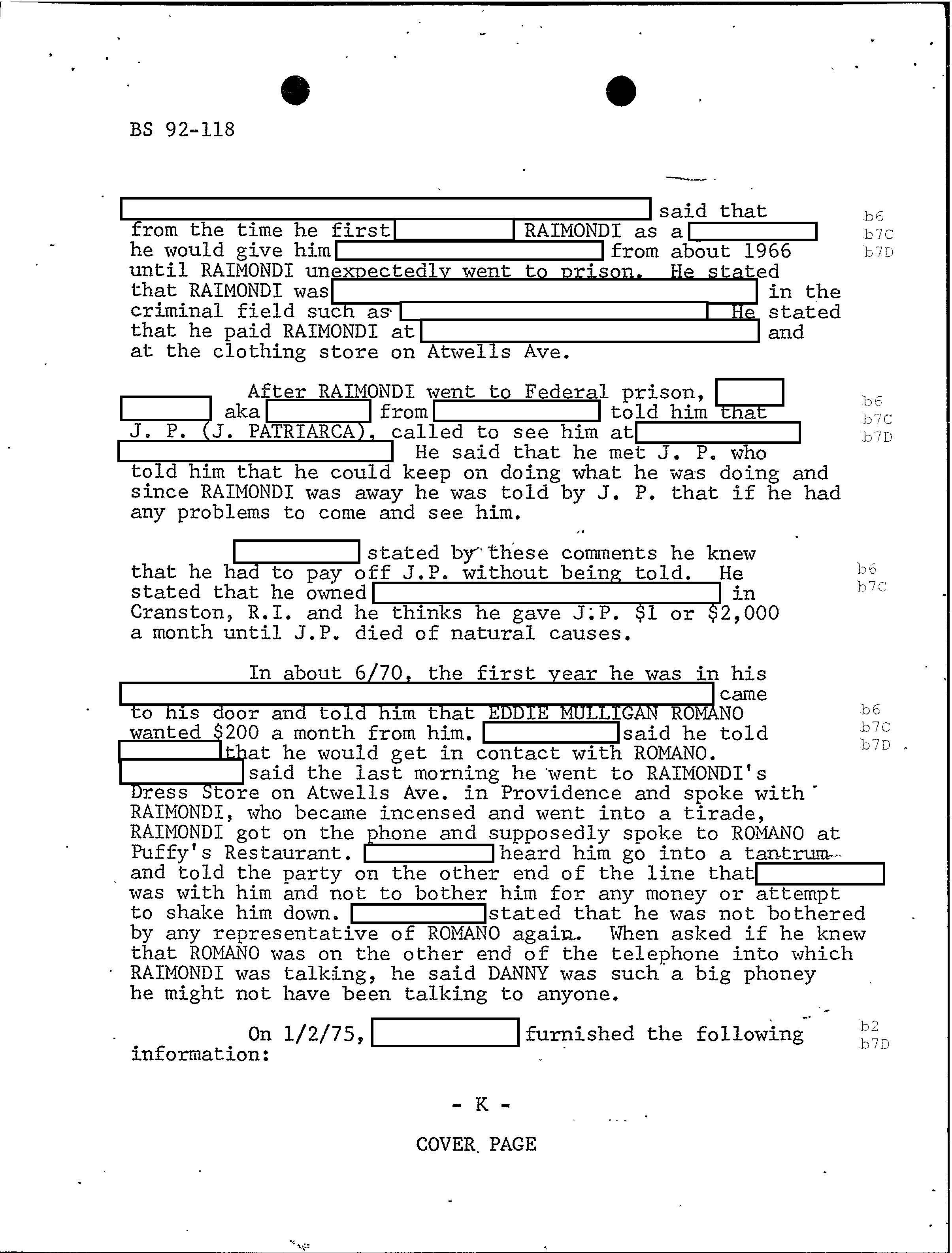 PAGE 98 Patriarca gives his permission to rob Hudson Furs. According to FBI document one member had $1 million in his safe deposit box at Hudson Furs. “According to the informant, Hudson Furs was owned by RAYMOND but public documents will not show this”