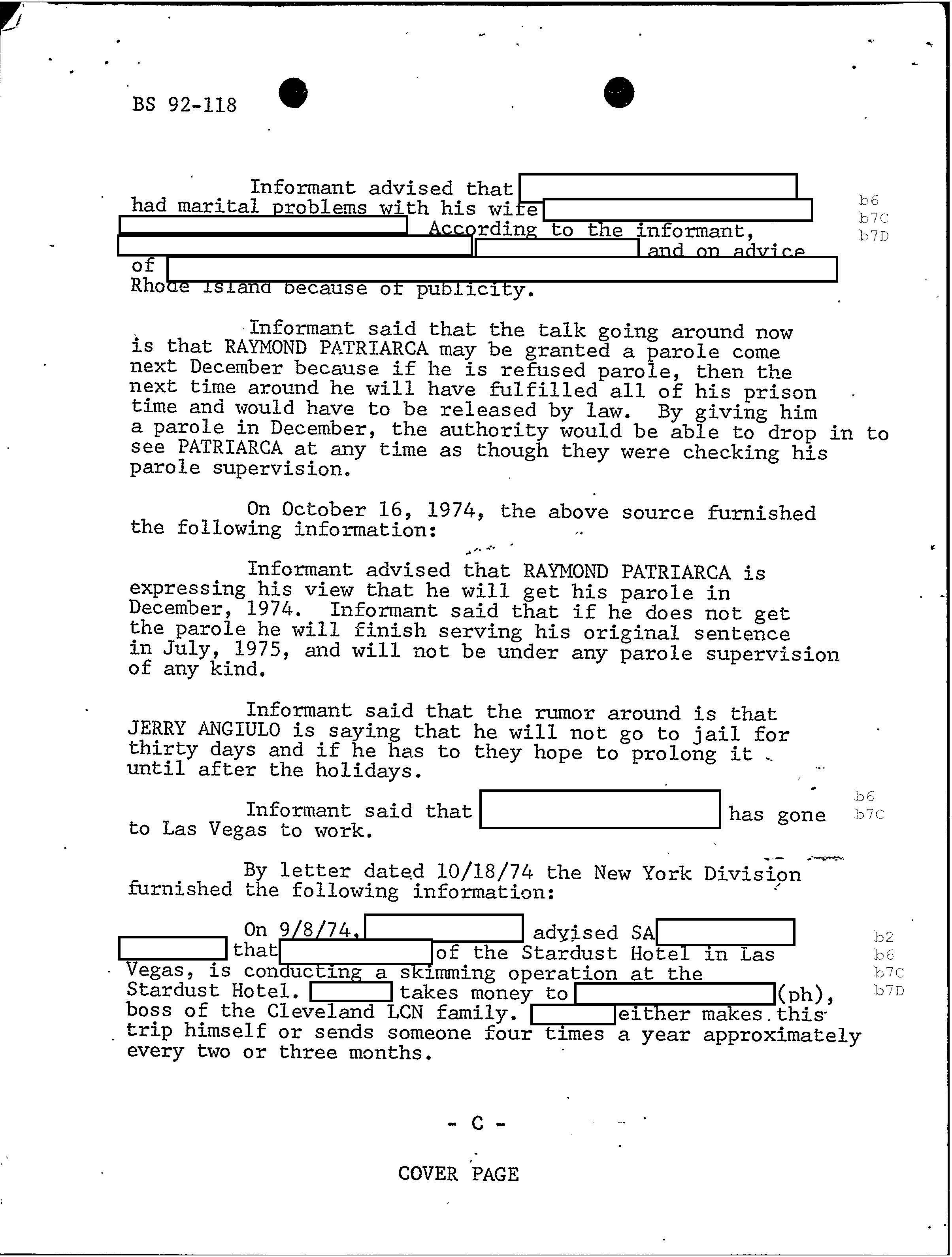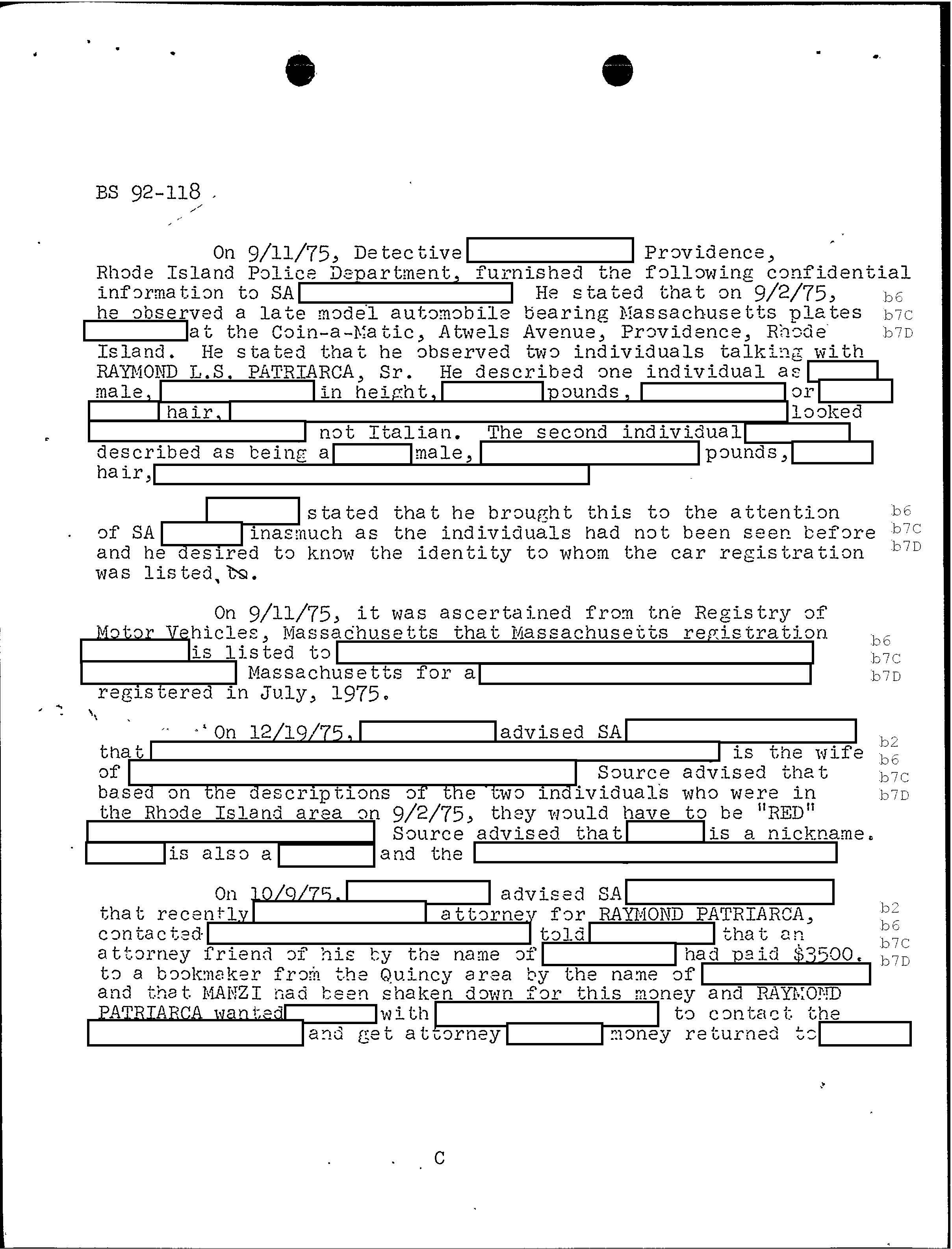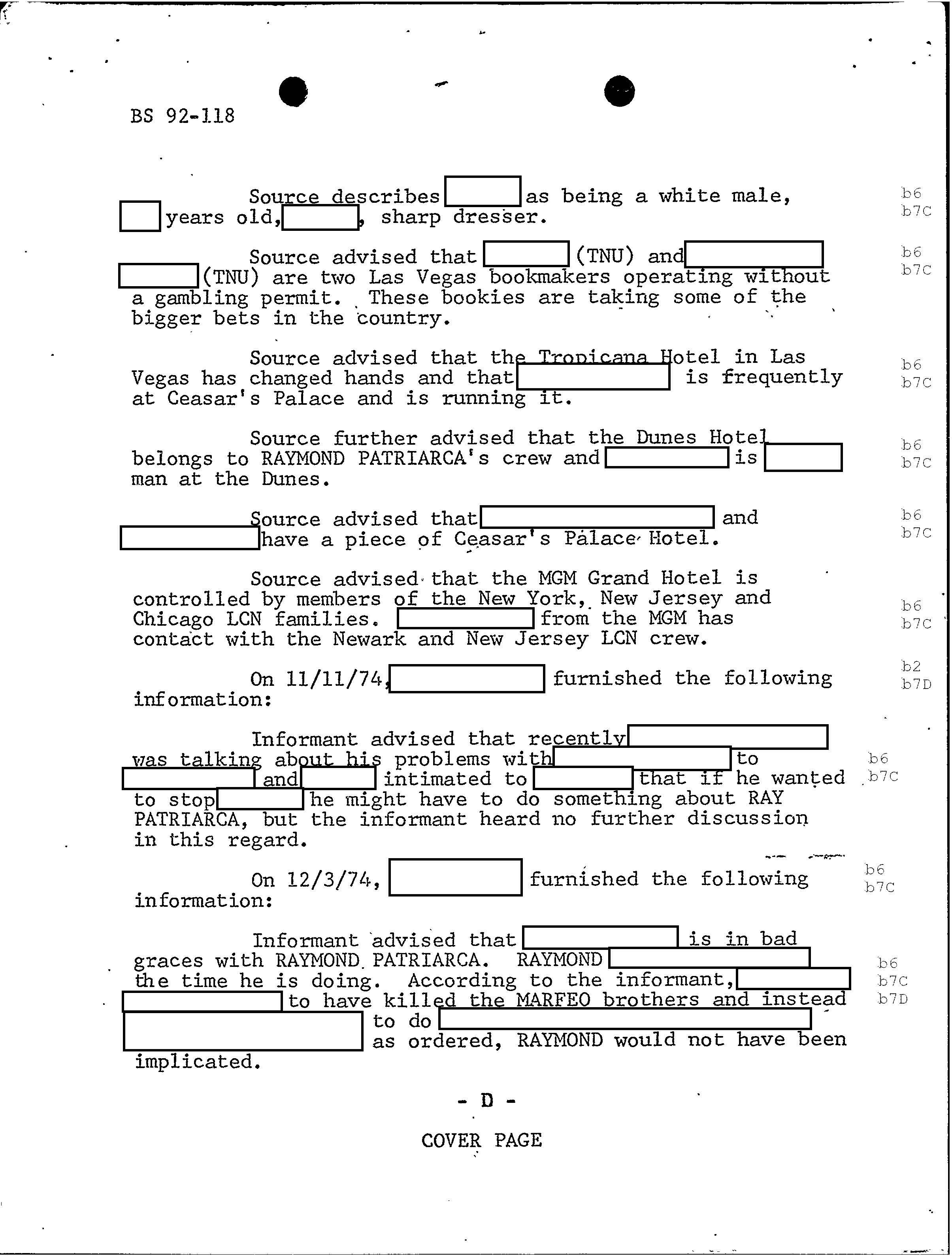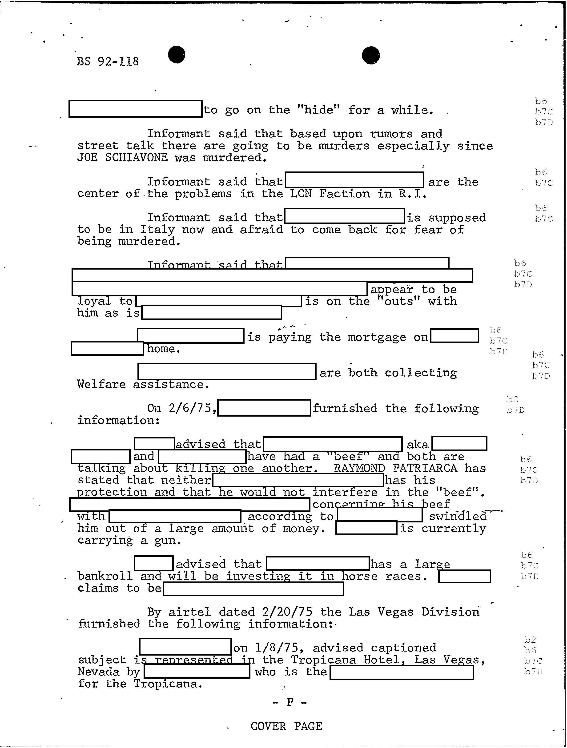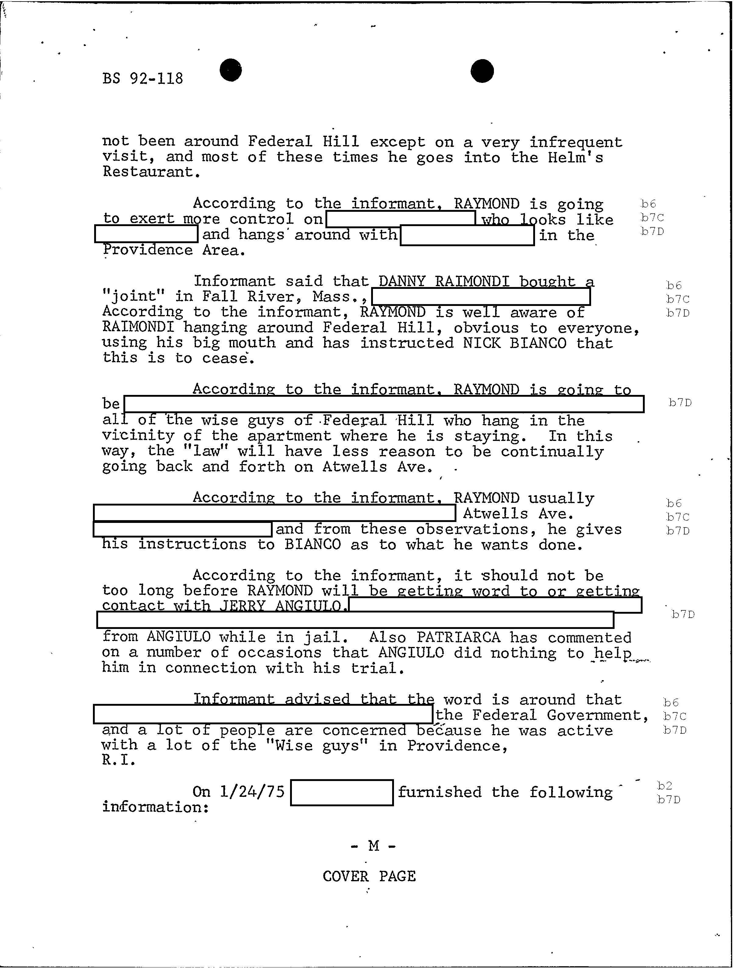 PAGE 98 Patriarca gives his permission to rob Hudson Furs. According to FBI document one member had $1 million in his safe deposit box at Hudson Furs. “According to the informant, Hudson Furs was owned by RAYMOND but public documents will not show this”