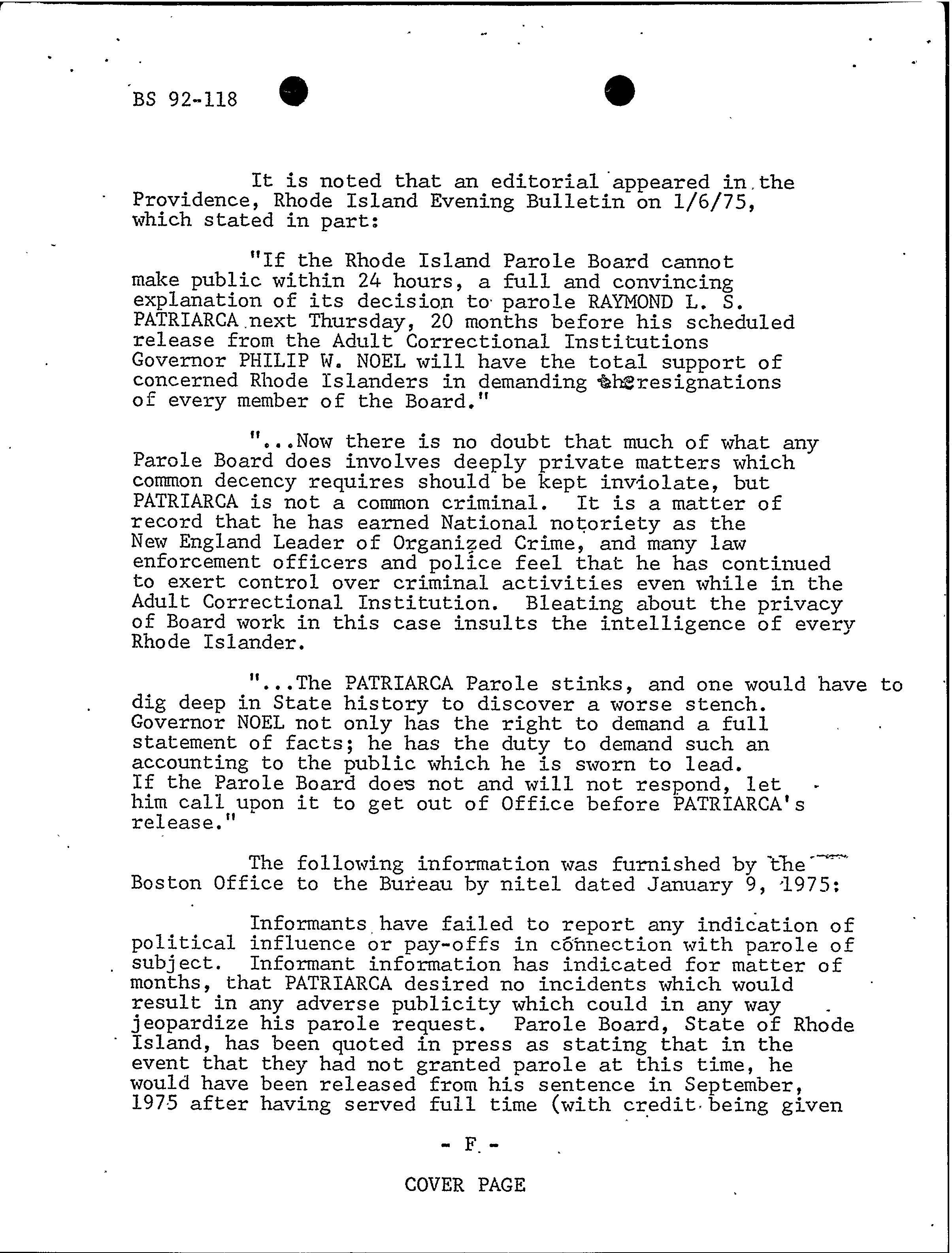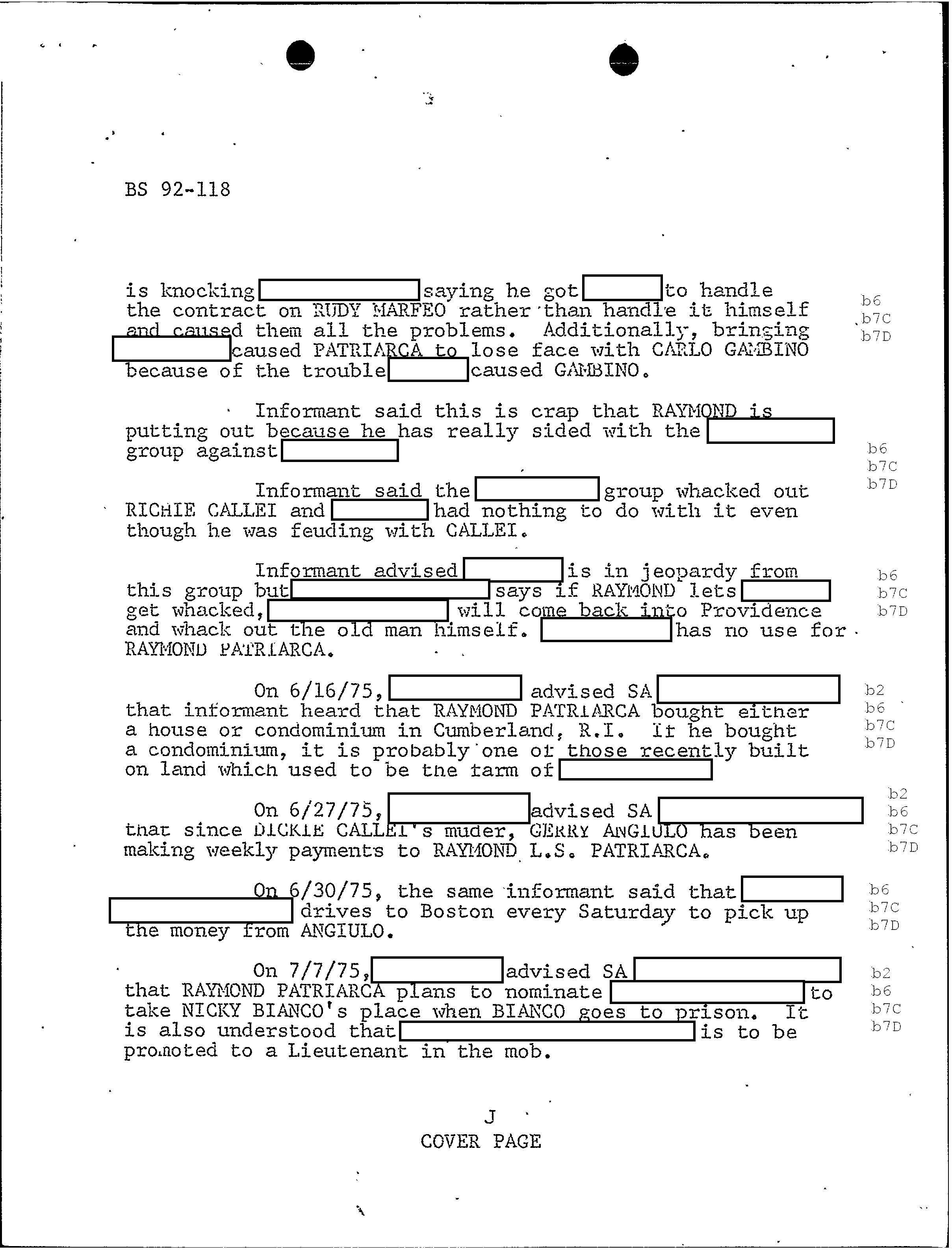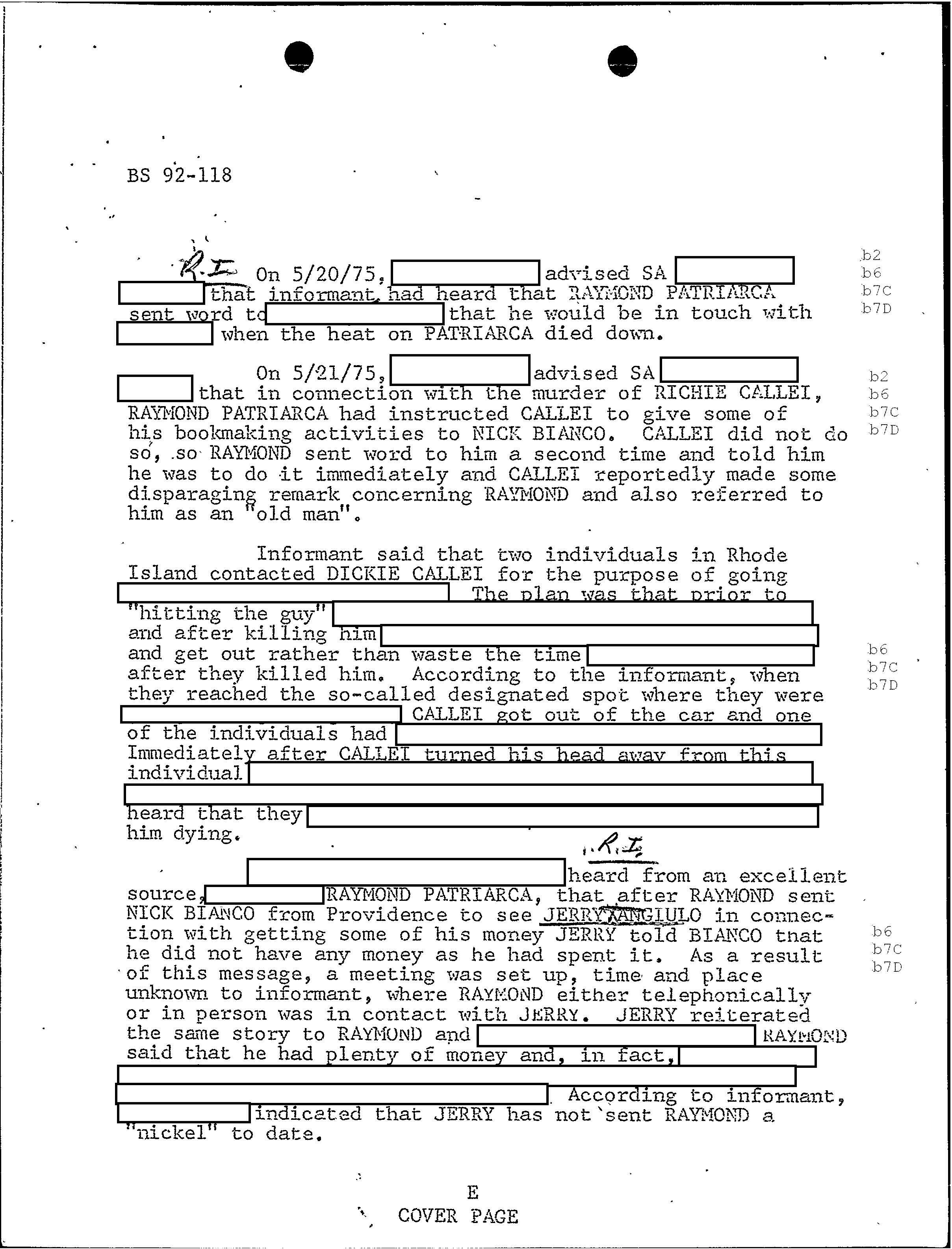 FBI Files - The Patriarca Papers - Entry 49 (Bonded Vault Robbery Okayed By Patriarca)