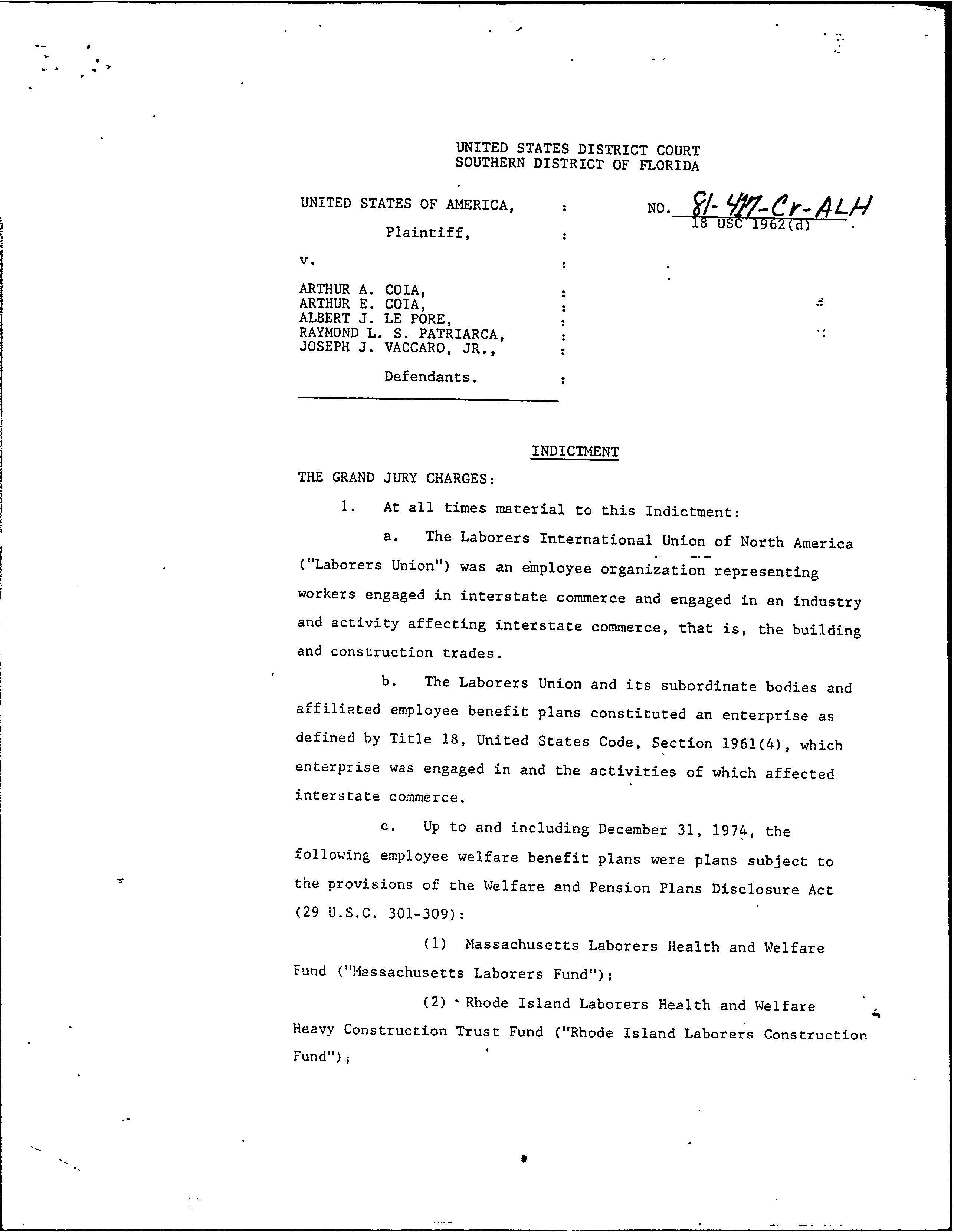 The full indictments are included in the documents. In addition, reponse documents are included as well.