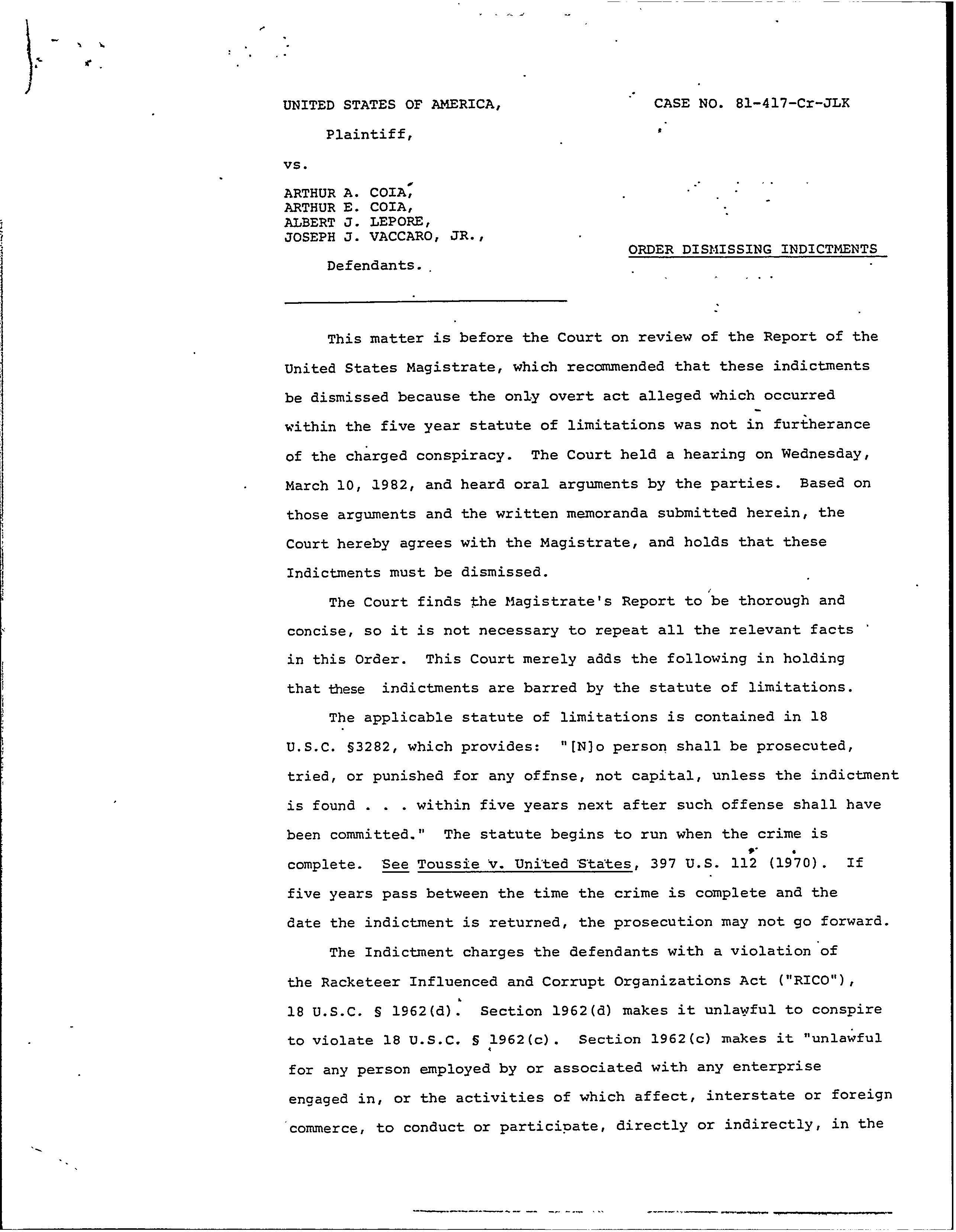 FBI Files - The Patriarca Papers - The Battle Between the Feds and Coia, Laborers, and Patriarca