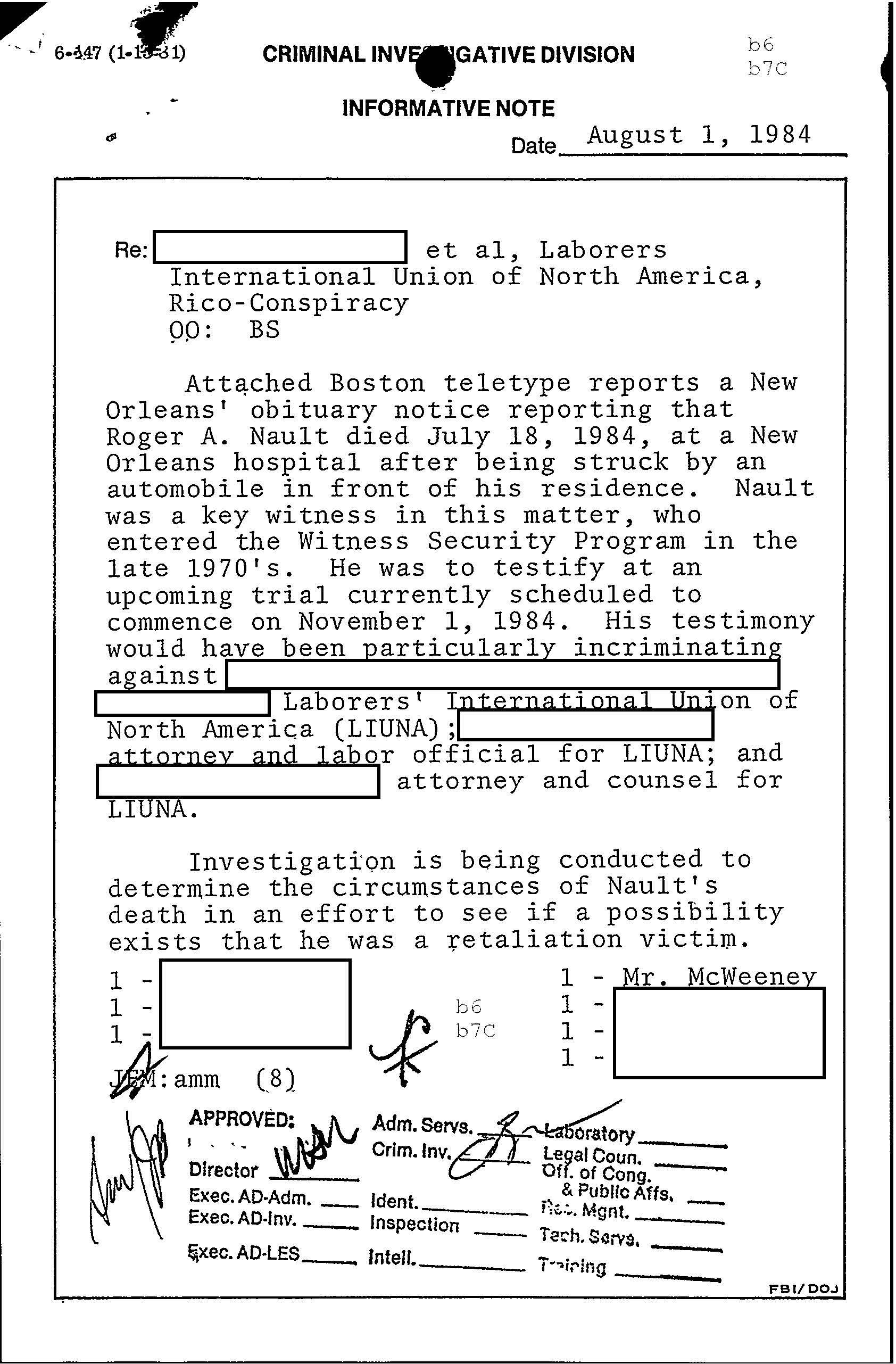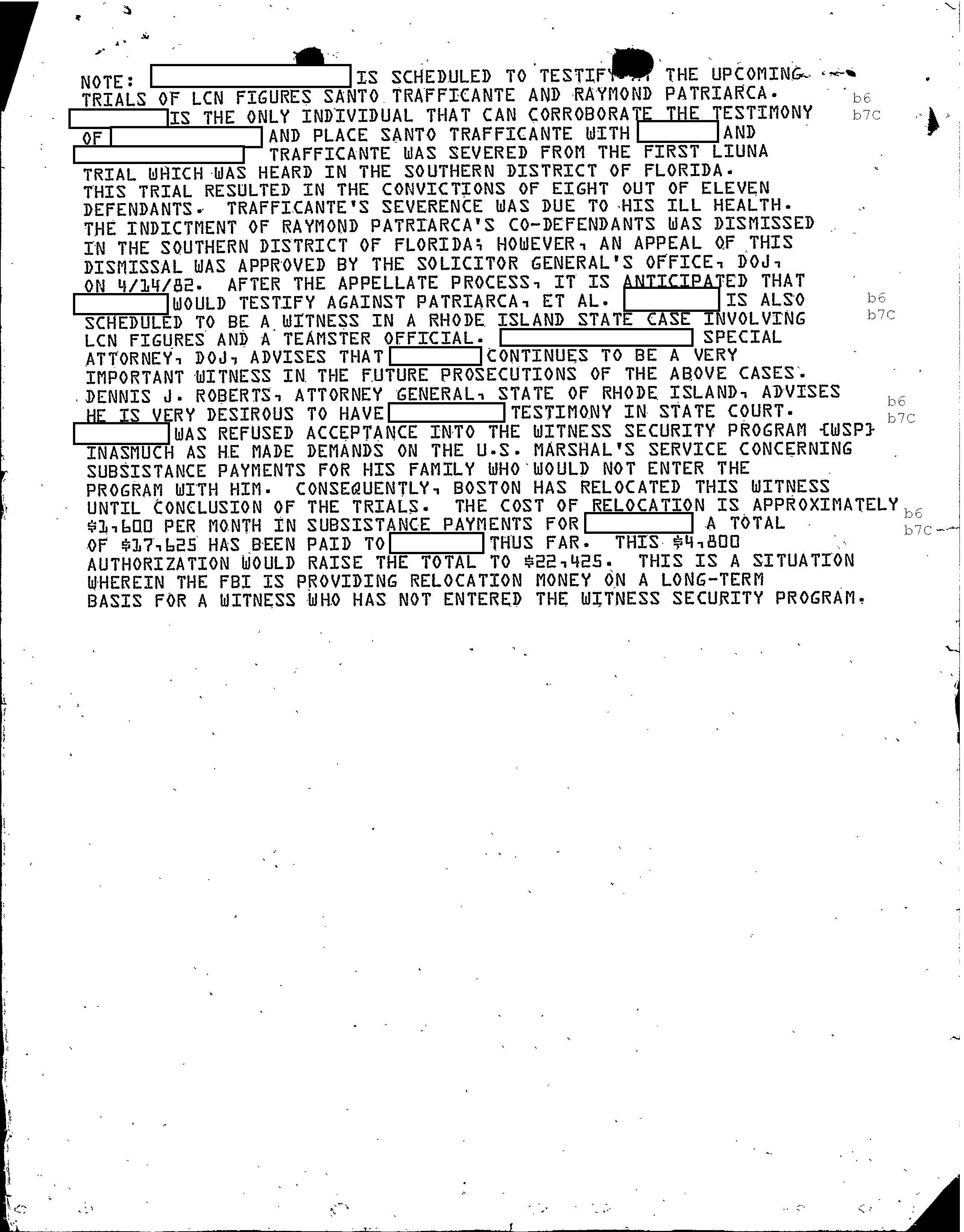 FBI Files - The Patriarca Papers - Entry 53, Informant Wanted $140,000 Payment