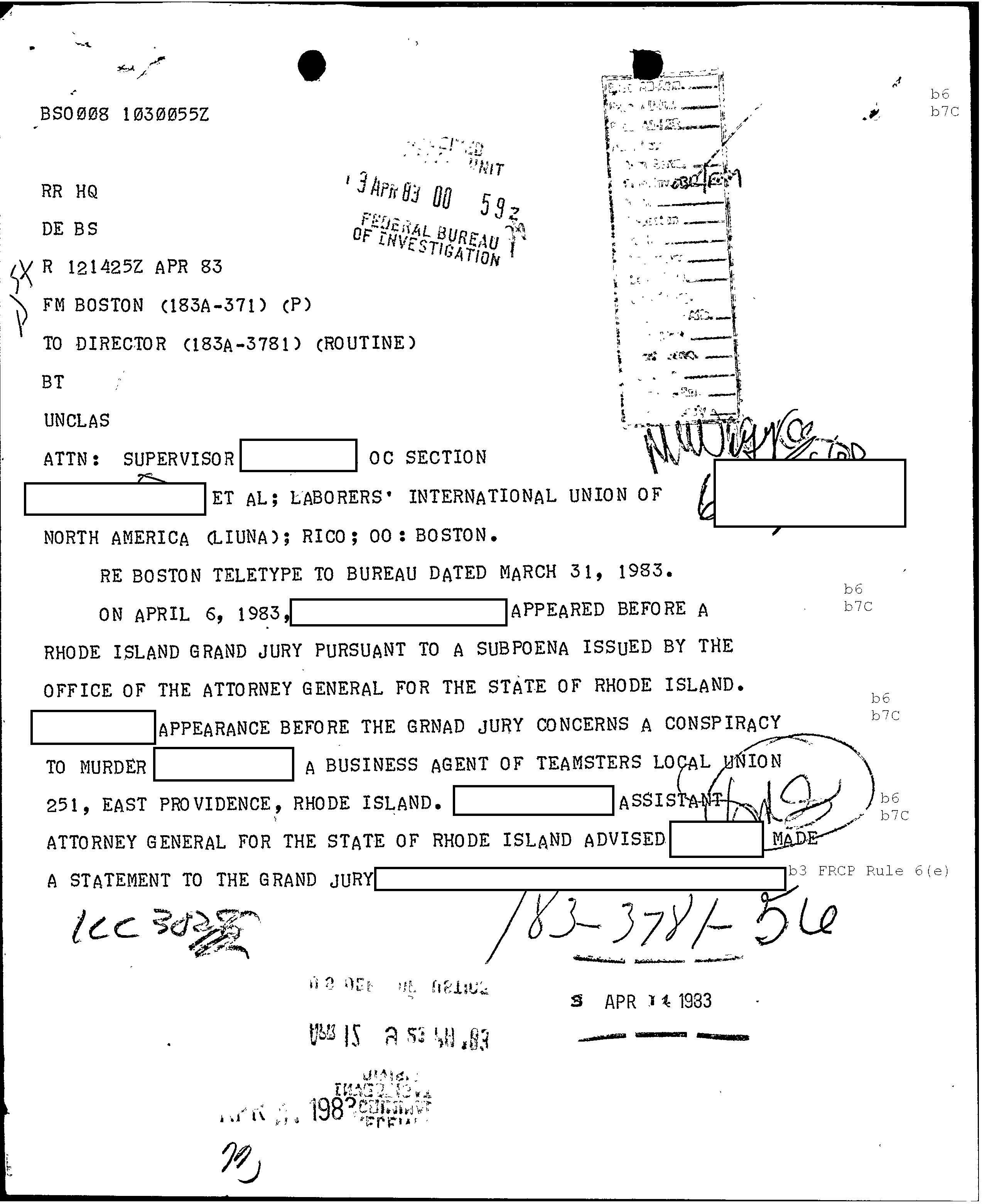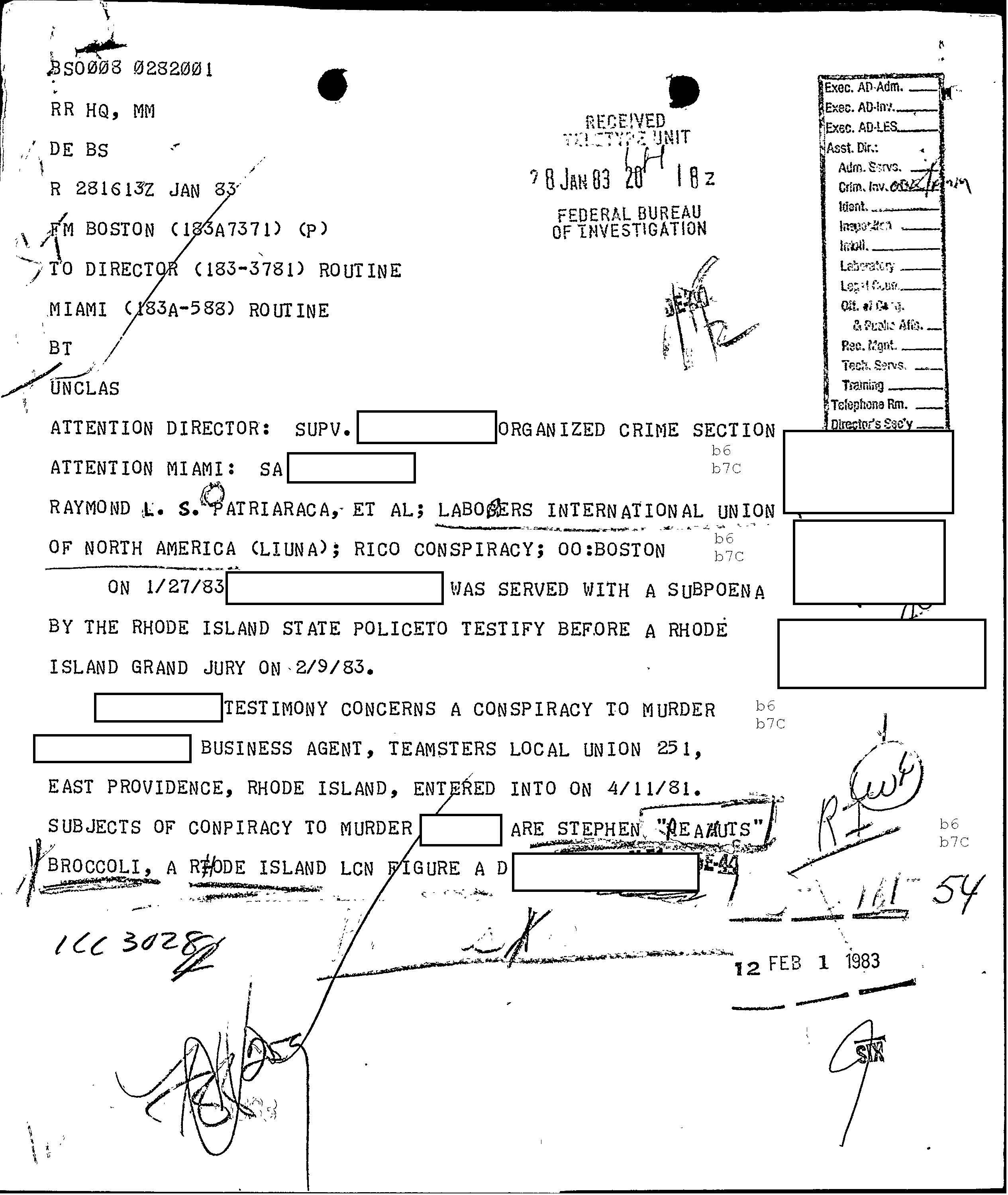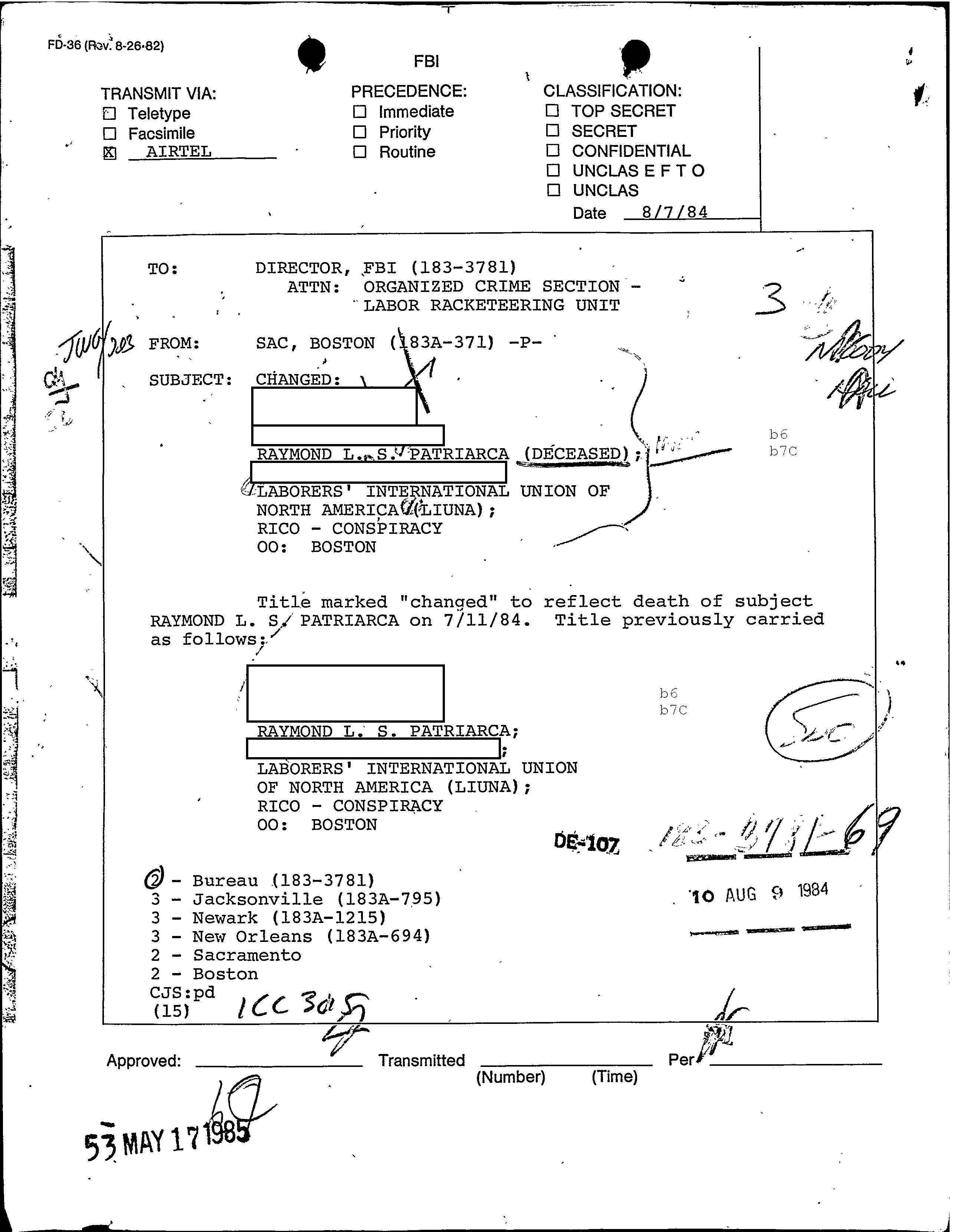 GET THE LATEST BREAKING NEWS HERE -- SIGN UP FOR GOLOCAL FREE DAILY EBLASTFBI Files - The Patriarca Papers - Entry 53