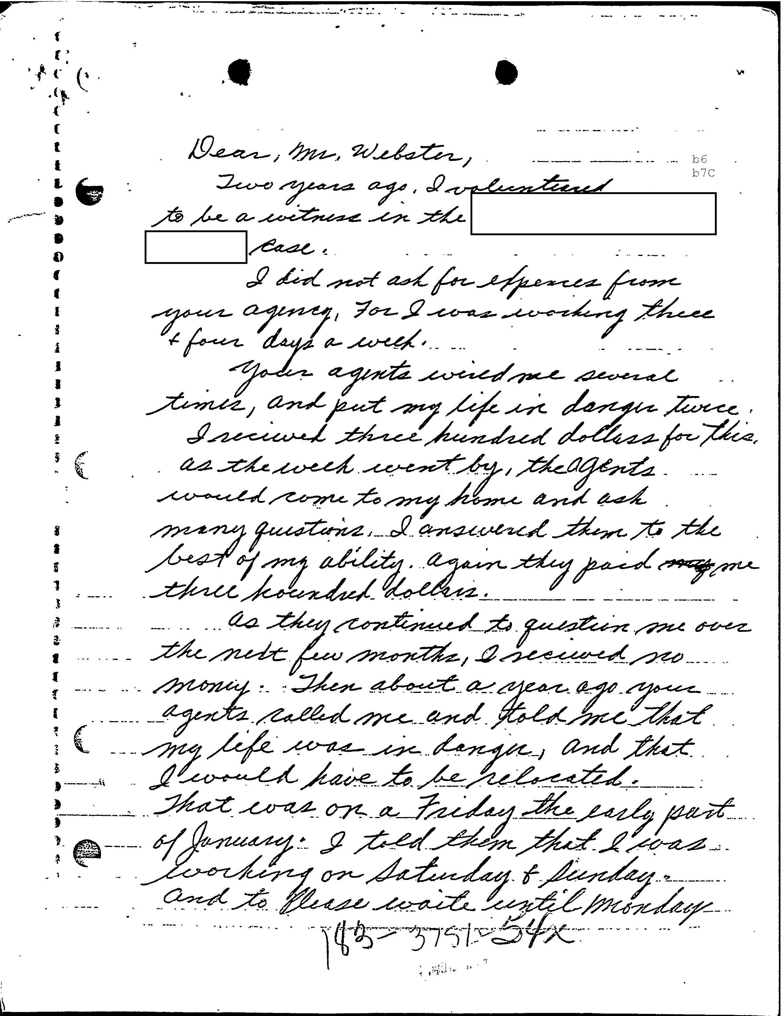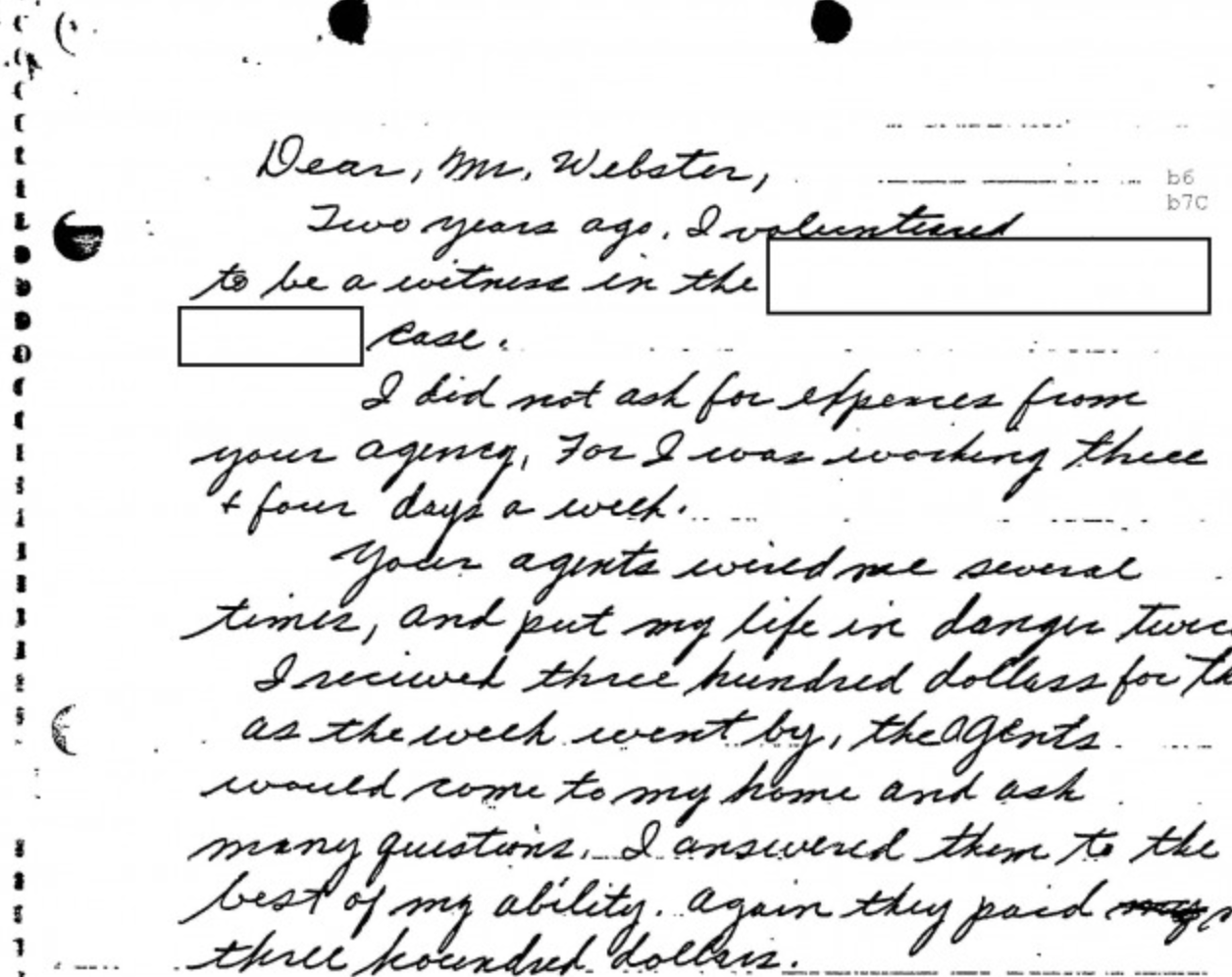 In a detailed letter from the informant sent certified mail to the Director of the FBI, William Webster, he outlined why his payments were insufficient.
