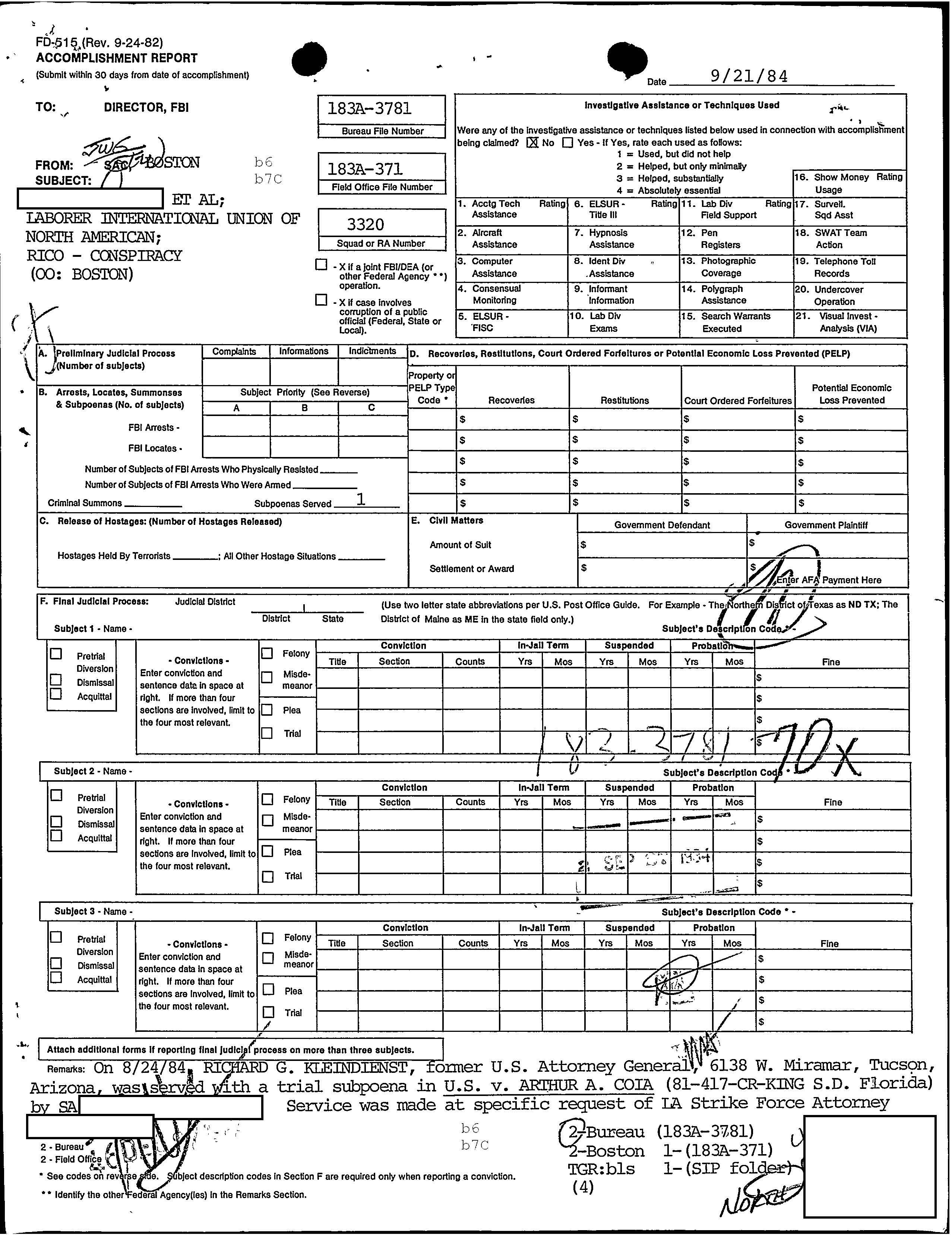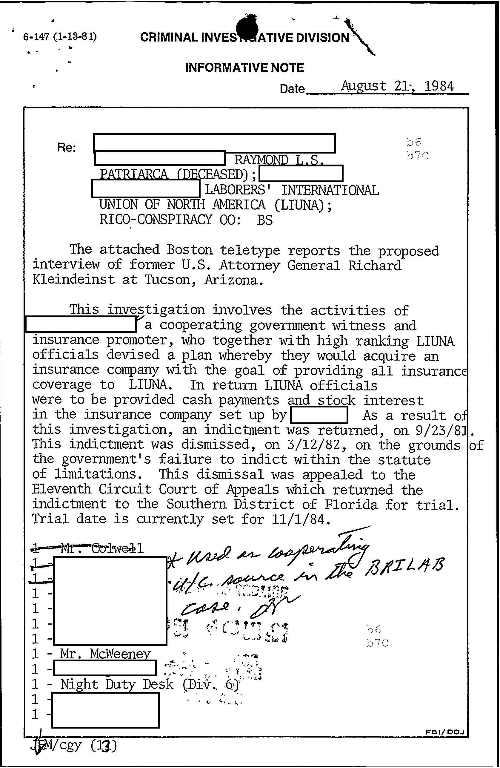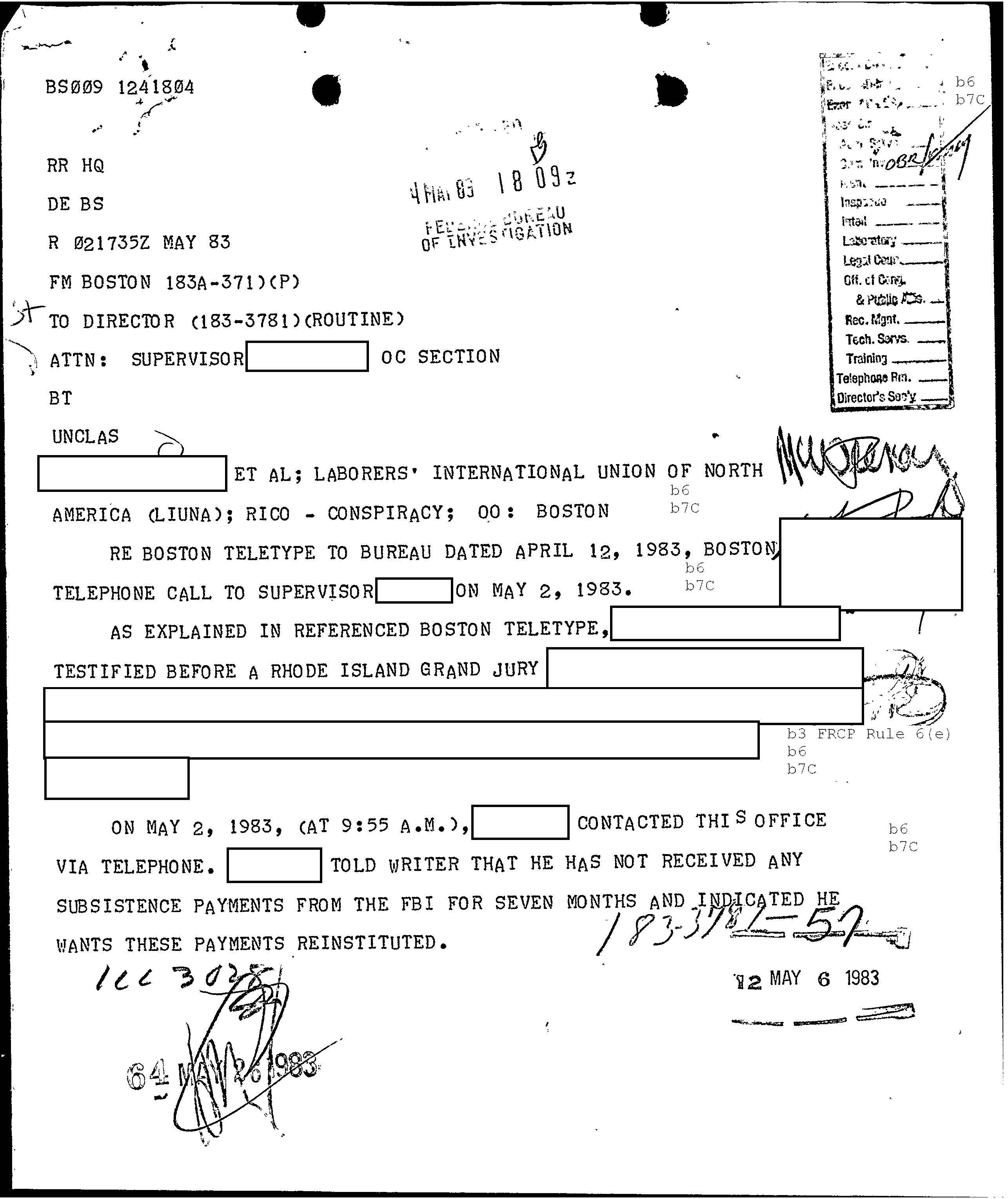 In the early 1980’s the FBI was paying the key informant tens of thousands of dollars and that was not enough. The informant no longer wanted a monthly payment — he demanded a lump some payment of $140,000.