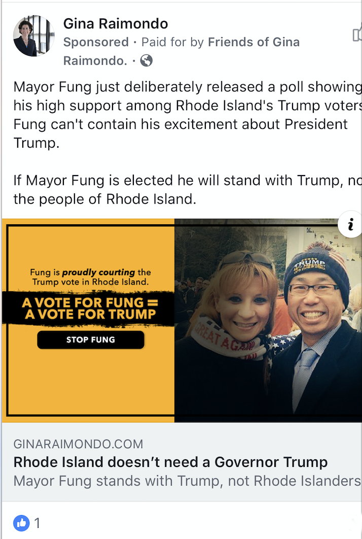 2018 Governor’s Race Playbook - Raimondo’s Attack Ad Includes Fung’s Wife