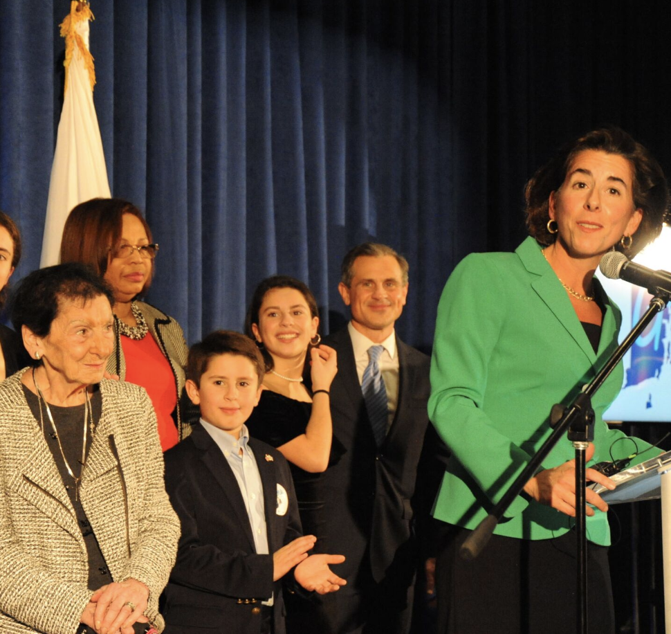 Governor Gina Raimondo election night at the Biltmore with familyIn Rhode Island, Election night was a blue wave on steroids. Not only did Democrats win every contested race for federal and statewide office, but the Democratic slaughter carried to nearly every General Assembly race and city and town.