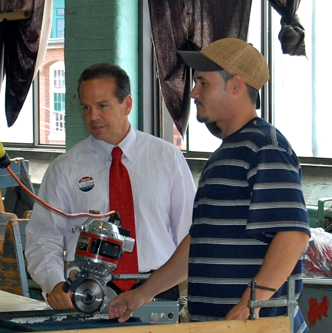 Congressional candidate David Cicilline, a Democrat, launched his ‘Made in Rhode Island Jobs Tour’ yesterday at Northwest Woolen Mills in Woonsocket. He criticized his Republican opponent John Loughlin for supporting tax breaks for corporations that shift jobs overseas.