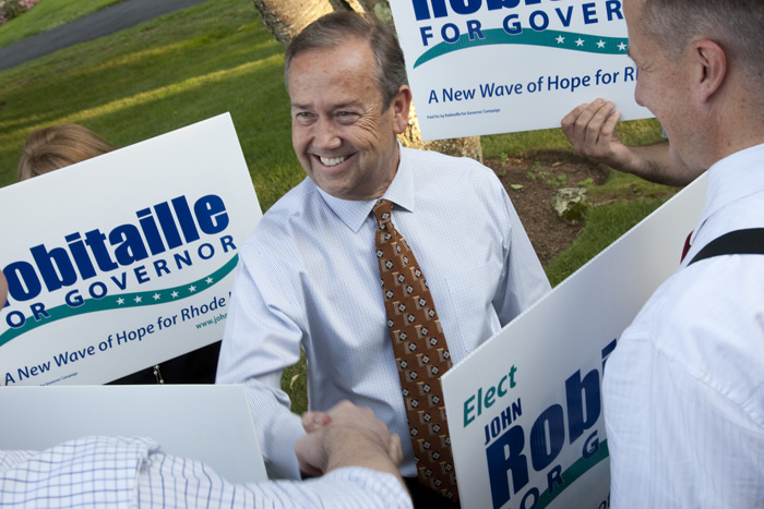 Darrell West, a former political science professor at Brown University, said Robitaille has emerged as a threat to independent Lincoln Chafee. “Chafee clearly is the frontrunner for the governor’s seat,” West, now a vice president at the Brookings Institution, said. “But he can’t be complacent. John Robitaille has gained ground over the last month, so Chafee needs to pay attention to his GOP rival to make sure he doesn’t squeeze past him for victory.”