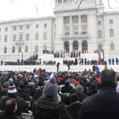 GET THE LATEST BREAKING NEWS HERE -- SIGN UP FOR GOLOCAL FREE DAILY EBLASTOn Tuesday, as the snow fell on the south portico it perhaps brought with it a cleansing. The marble appeared brighter, the Independent Man’s golden gloss glimmered fiercely atop the beautiful and unmistakable dome, even the Commodore Perry and Governor Greene statue stood out more boldly. The obvious presence and participation of children and youth was a clear sign that the election of these new young reformers has changed the political dynamic. And, it felt good. Change for the better was palpable in the cold air and it could be felt right from the start and somehow the Cumberland Little Leaguers made the Pledge of Allegiance seem even more meaningful.