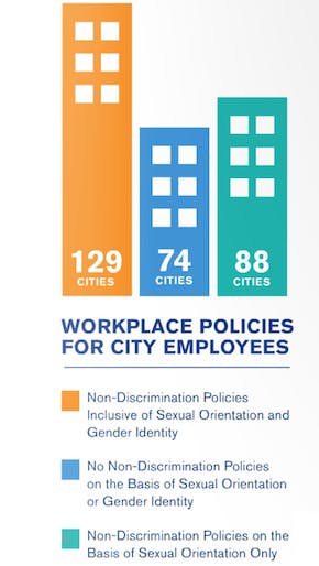 By offering equivalent benefits and protections to LGBT employees, and by awarding contracts to fair-minded businesses, municipalities commit themselves to treating LGBT employees equally.