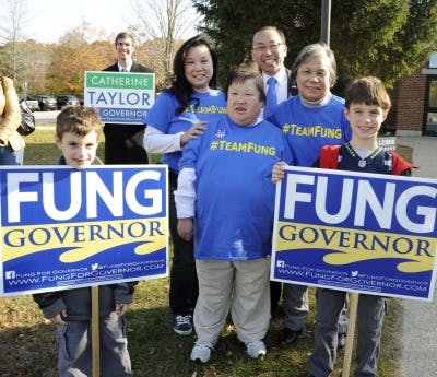 While Fung and Taylor were rallying at the polls in Cranston.