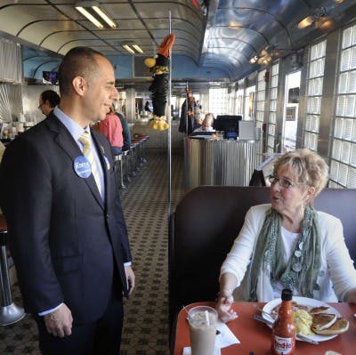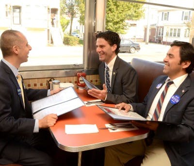 Cianci and Elorza were busy in Providence greeting supporters.