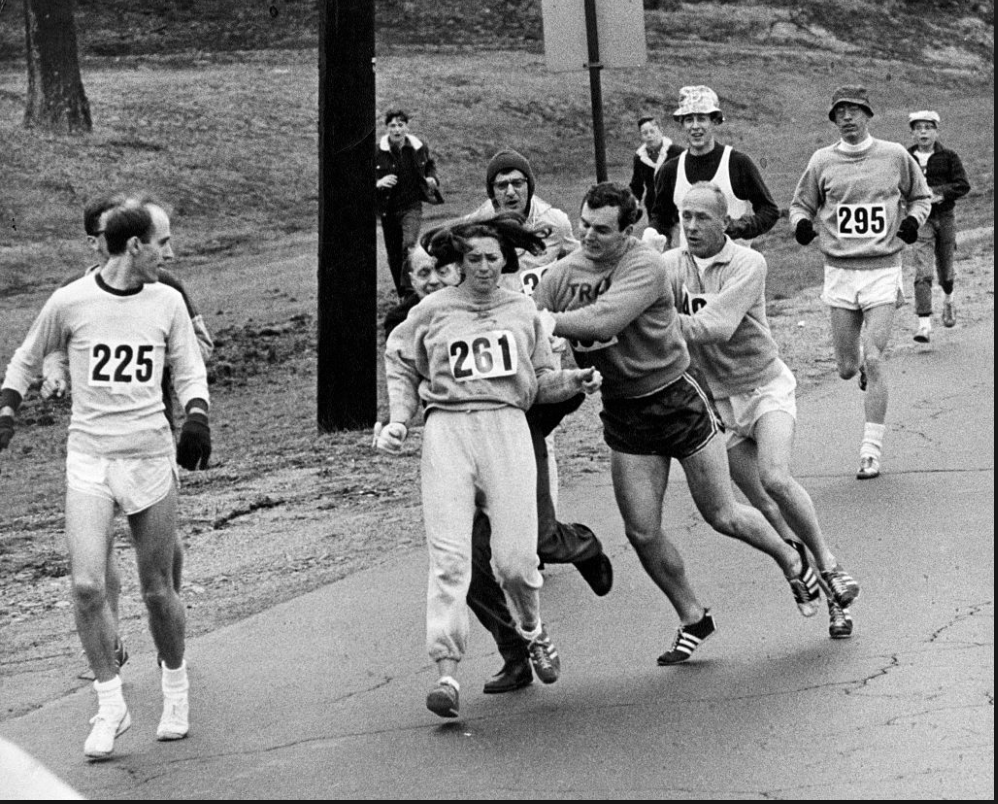 A woman wanted to run the Boston Marathon. That simple fact, a perfectly understandable desire for human achievement, was deemed by some troglodyte men to be an unpardonable sin. To those of us who have either run or observed recent Marathons it seems utterly inconceivable that such a desire was seen as tantamount to treason.