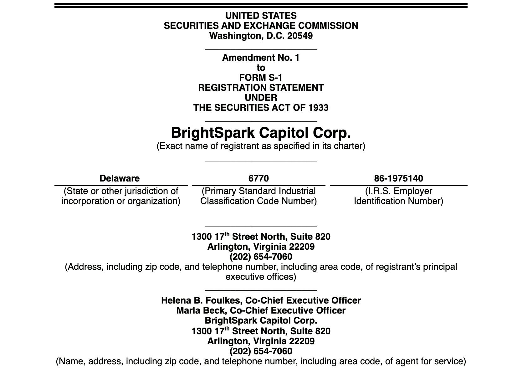 Under the construct of the deal as filed with the SEC, Foulkes' Arlington, VA-based company plans to raise $200 million by offering 20 million units at $10. Each unit will consist of one share of common stock and one-fourth of a warrant, exercisable at $11.50. At the proposed deal size, BrightSpark Capitol will command a market value of $250 million but with the total value of warrants the "Proposed Maximum Aggregate Offering Price" will top $296 million.