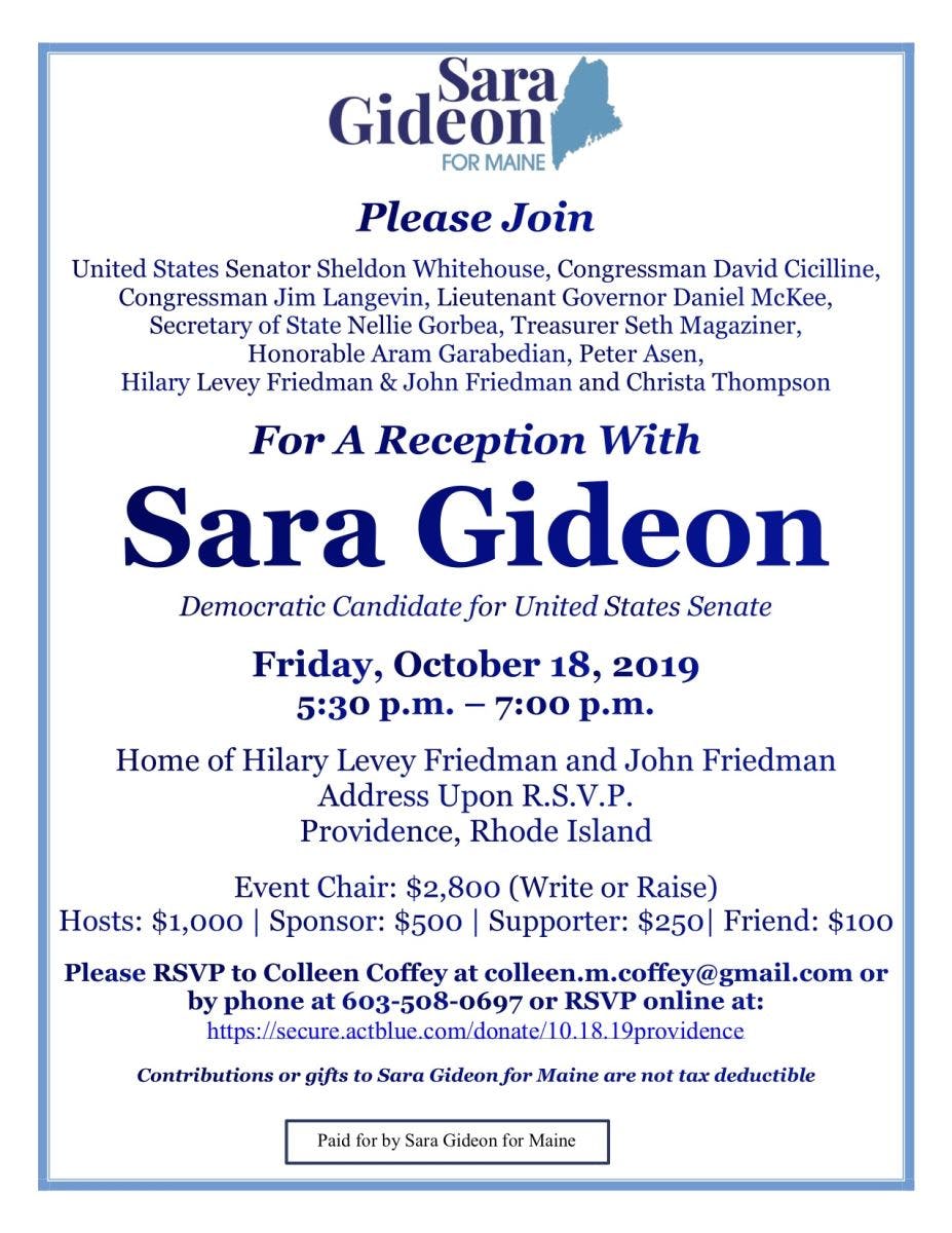 Top RI Dems Headline Fundraiser for RI Native Gideon in Battle to Unseat Sen. Collins in ME