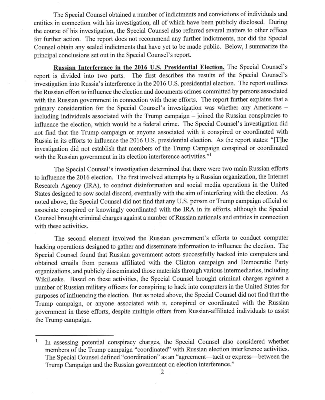 Most damaging to the president is the careful detailing of 10 instances of potentially criminal efforts to obstruct justice. Contrary to the mischaracterization by the attorney general, the report explicitly says that the Justice Department’s existing policy of ruling out the indictment of a sitting president was a major factor in their decision not to make a ‘traditional prosecutorial judgment.” Indeed, the Special Counsel goes even further, mentioning that they are preserving all the evidence, leaving open the possibility of the president being indicted after he leaves office and touching on Congress’ role in exploring the obstruction of justice question.