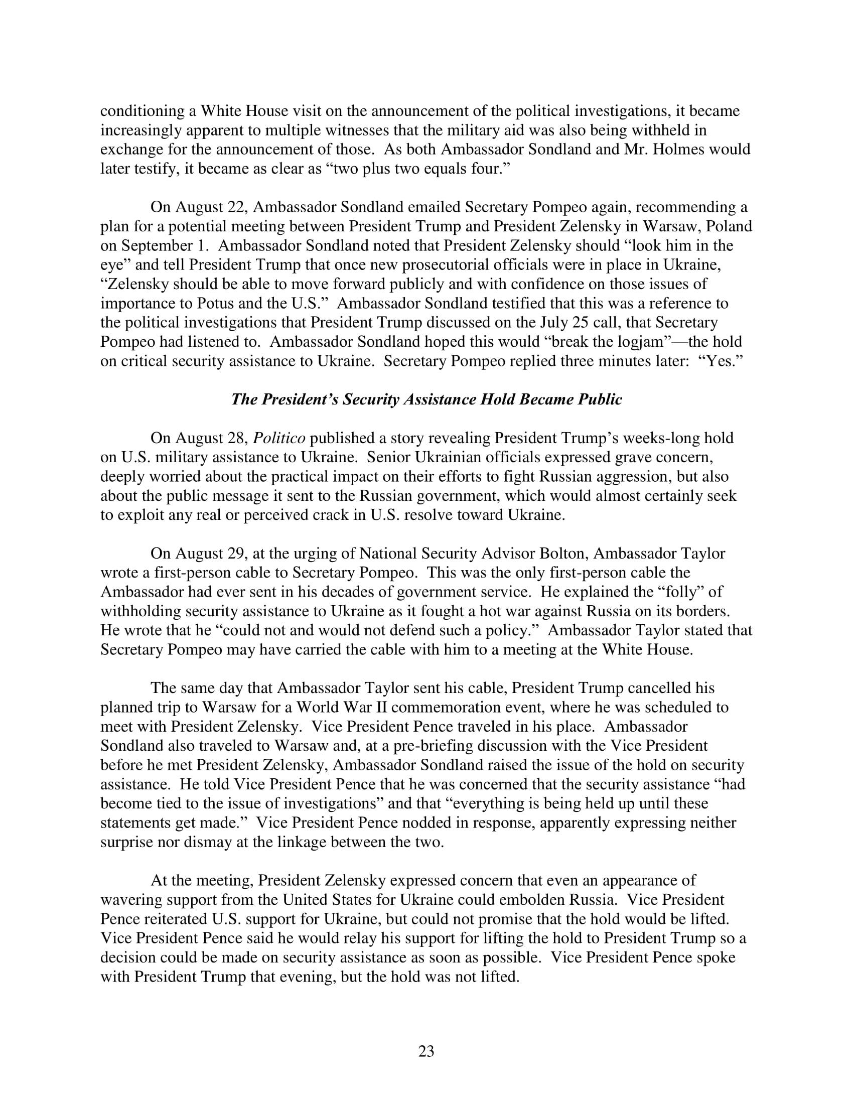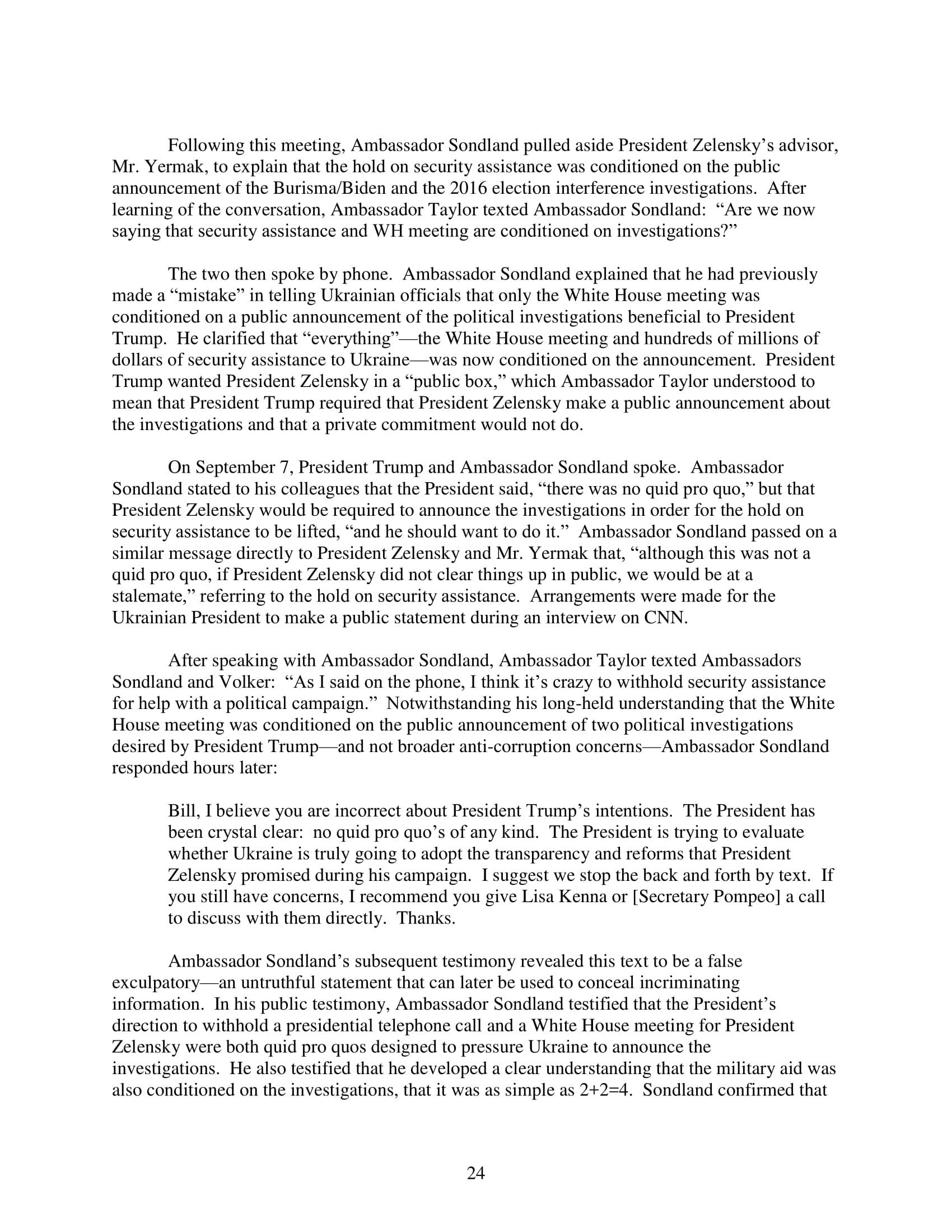 Lieberman concluded, “Let us as a nation honestly confront the damage that the president's actions over the last seven months have caused, but not to the exclusion of the good that his leadership has done over the past six years, nor at the expense of our common interest as Americans. And let us be guided by the conscience of the Constitution, which calls on us to place the common good above any partisan or personal interest, as we now in our time work together to resolve this serious challenge to our democracy.”