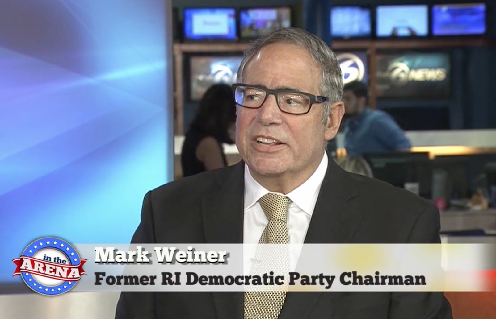 The "In the Arena" panel includes former State Representative Ray Rickman, GoLocal CEO Josh Fenton, former Lt. Governor Thomas DiLuglio and former State Representative Amy Rice.