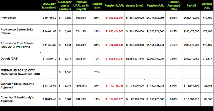 Not only have I already created a recognized report and template for analyzing Providence by utilizing Stanford GSB metrics, but I have conformed all my findings to the criteria Moody’s will be choosing to rate municipal debt. I am using this template for every town. Rhode Island officials have been notified by Moody’s that the ratings agency has doubled their emphasis on pension under funding and established a variable discount rate assumption ranging from 3% to 6%—not a ridiculously high 8.25% like Providence uses, or 8% for West Warwick and Fireman Doughty, or SEIU 9%, or even the 7.5% the state uses. Every town will be adjusted to Moody’s 6%. Additionally no more “smoothing assets” like Providence has done. All town officials should know the market value of plan assets at all times. Many other cities have violated this obvious GASB change as well and the accounting profession is banning this practice of smoothing.