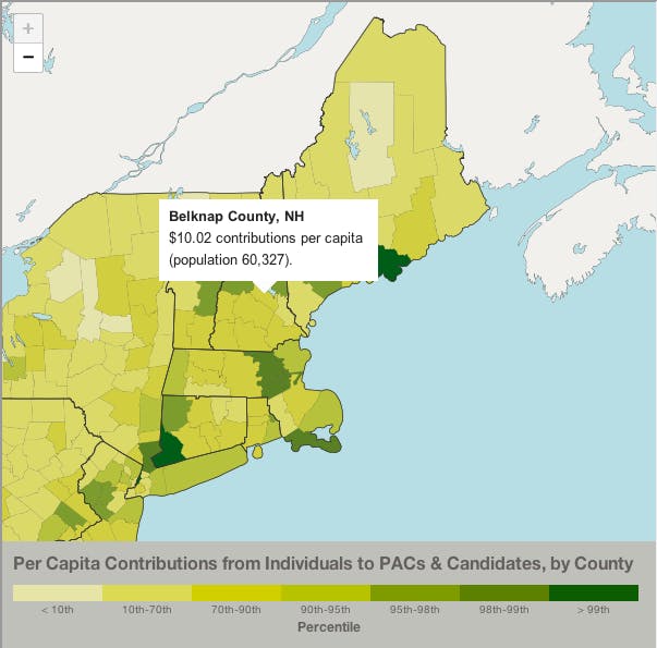 Belknap County is one of the ten counties in New Hampshire and has a population of 60,327. It is located in the center of New Hampshire and the largest city is Laconia.