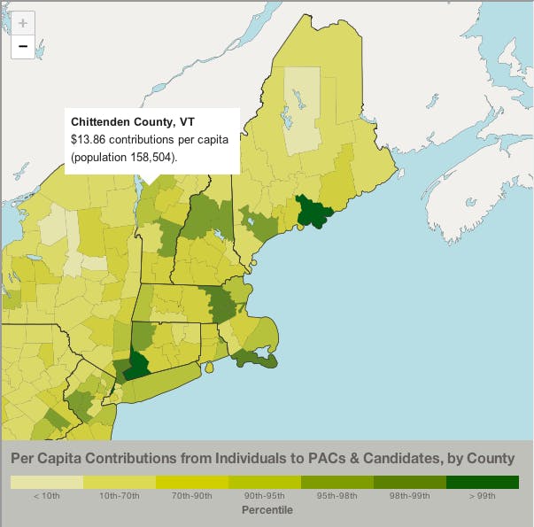 Chittenden has a population of 158,504, making it Vermont’s most populated county. Chittenden’s largest city is Burlington, which has about one third of Vermont’s total population.