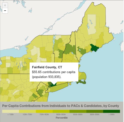 In a population of 933,835, Fairfield County is the most densely populated county in Connecticut, and contains four of the state's largest cities -- Bridgeport, Stamford, Norwalk and Danbury.