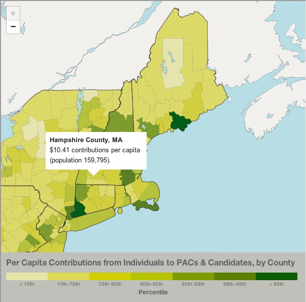 Hampshire County has a total area of 545 square miles and is located in the middle of Massachusetts. Hampshire County is also the only county to be surrounded in all directions by other Massachusetts counties.