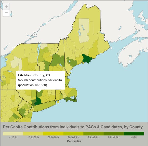 Although it is Connecticut’s largest county, Litchfield has the lowest population density in all of Connecticut. Since 1960 all Connecticut counties have no county government.