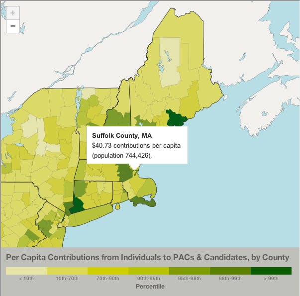 Suffolk County has a population of 744,426 and contains Massachusetts’s largest city, Boston. Although Suffolk’s county government was abolished in the late 1900’s, it still remains as a geographic area.