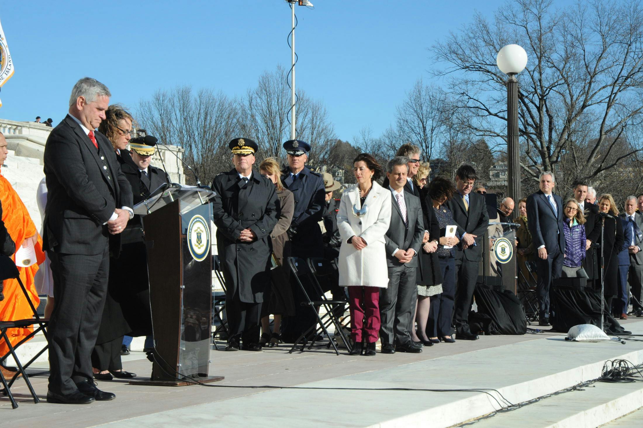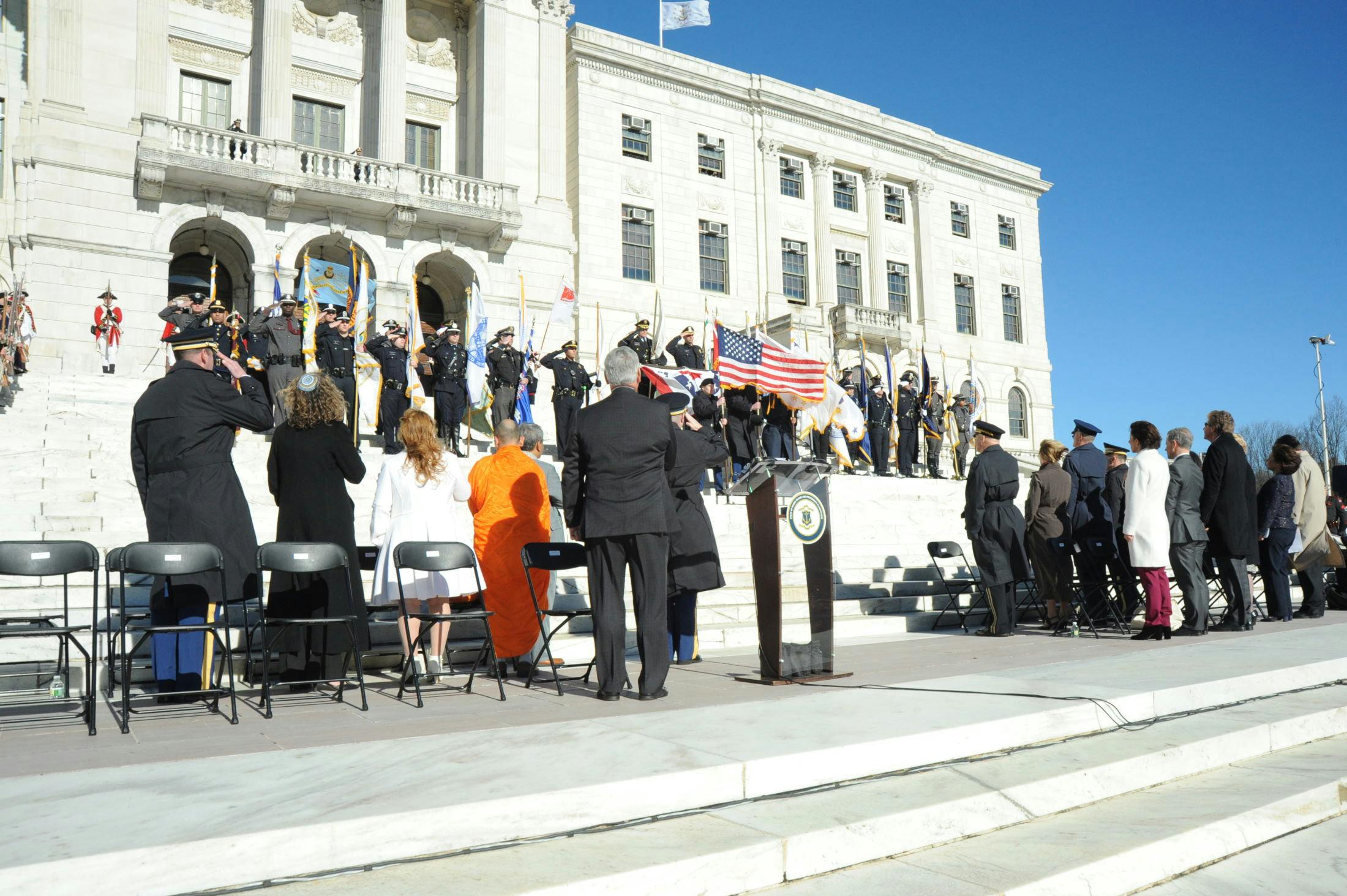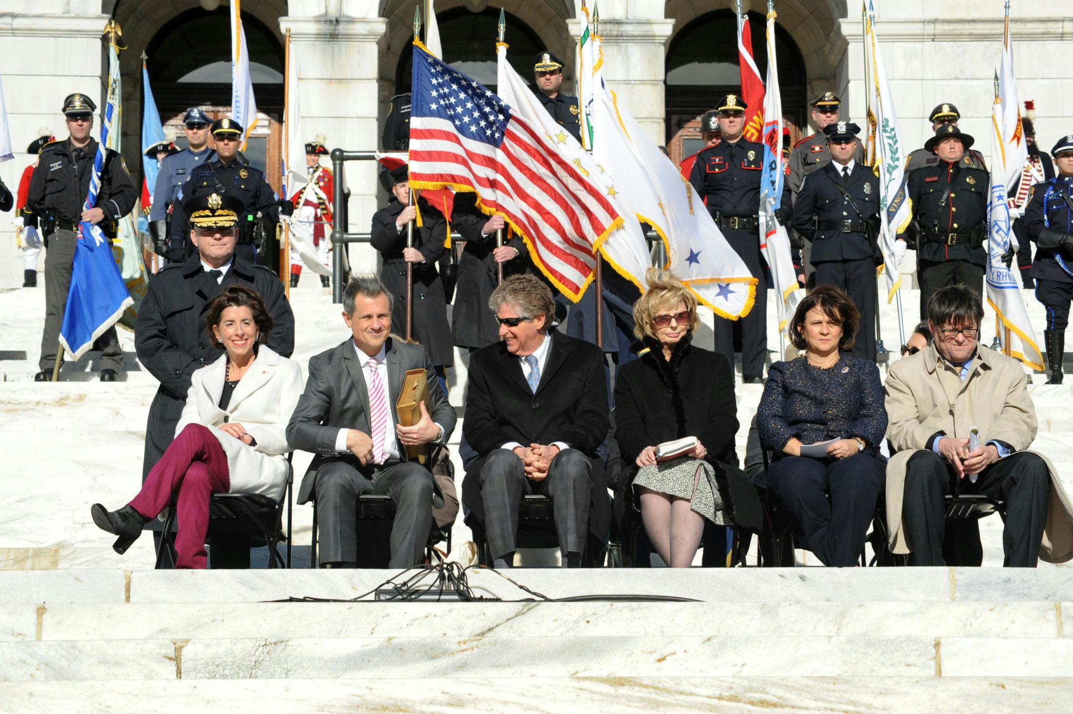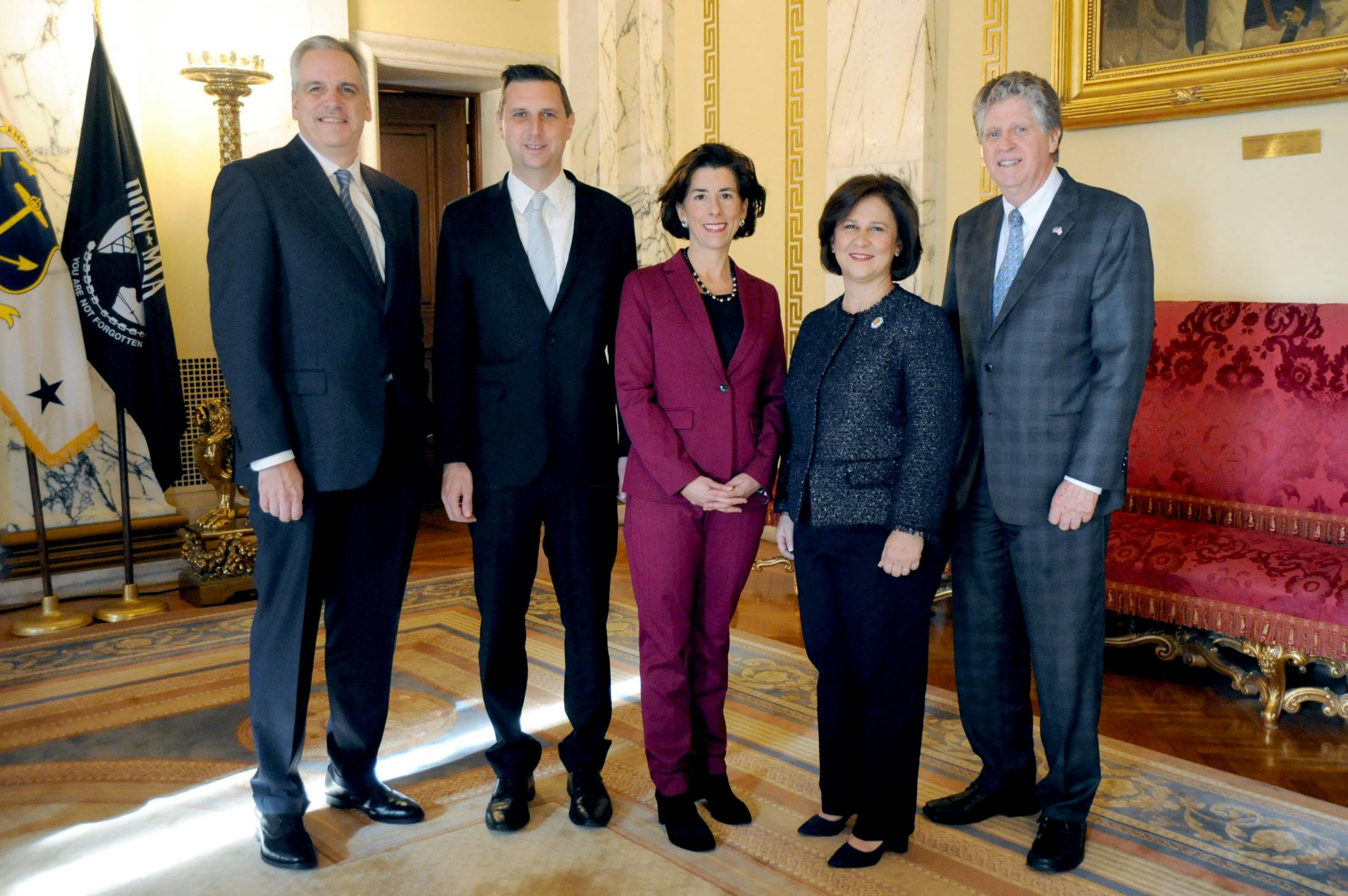 Speaker of the House Nicholas A. Mattiello (D-Dist. 15, Cranston) and Senate President Dominick J. Ruggerio (D-Dist. 4, North Providence, Providence) attended the annual Greater Providence Chamber of Commerce Legislative Luncheon held at the Rhode Island Convention Center. They were joined by House Majority Leader K. Joseph Shekarchi (D-Dist. 23, Warwick), House Minority Leader Blake A. Filippi (R-Dist. 36, New Shoreham, Charlestown, South Kingstown, Westerly), Senate Majority Leader Michael J. McCaffrey (D-Dist. 29, Warwick) and Senate Minority Leader Dennis L. Algiere (R-Dist. 38, Westerly, Charlestown, South Kingstown) for a panel discussion regarding business and economic issues within the state.