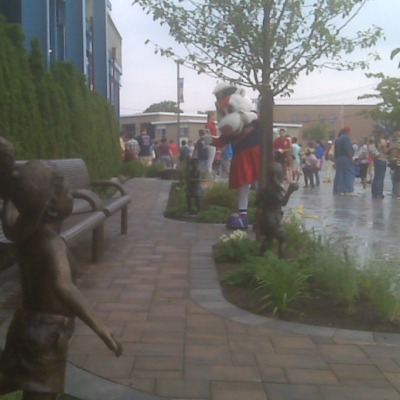 The garden features six miniature bronze statues of kids playing baseball along with park benches and handicap accessible area's.
