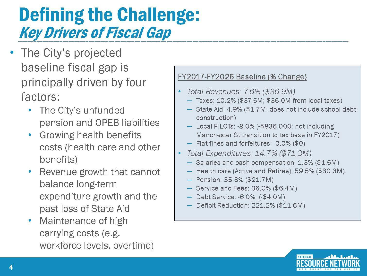 A new report issued by The National Resource Network called "City of Providence Ten Year Plan", does an excellent job detailing the capital city's financial woes. What's great about this report isn't the fact that it explains the obvious--that the city's long term liabilities (pension and health care benefits promised to retirees) weigh the city down--but that it provides a benchmark to other New England cities.