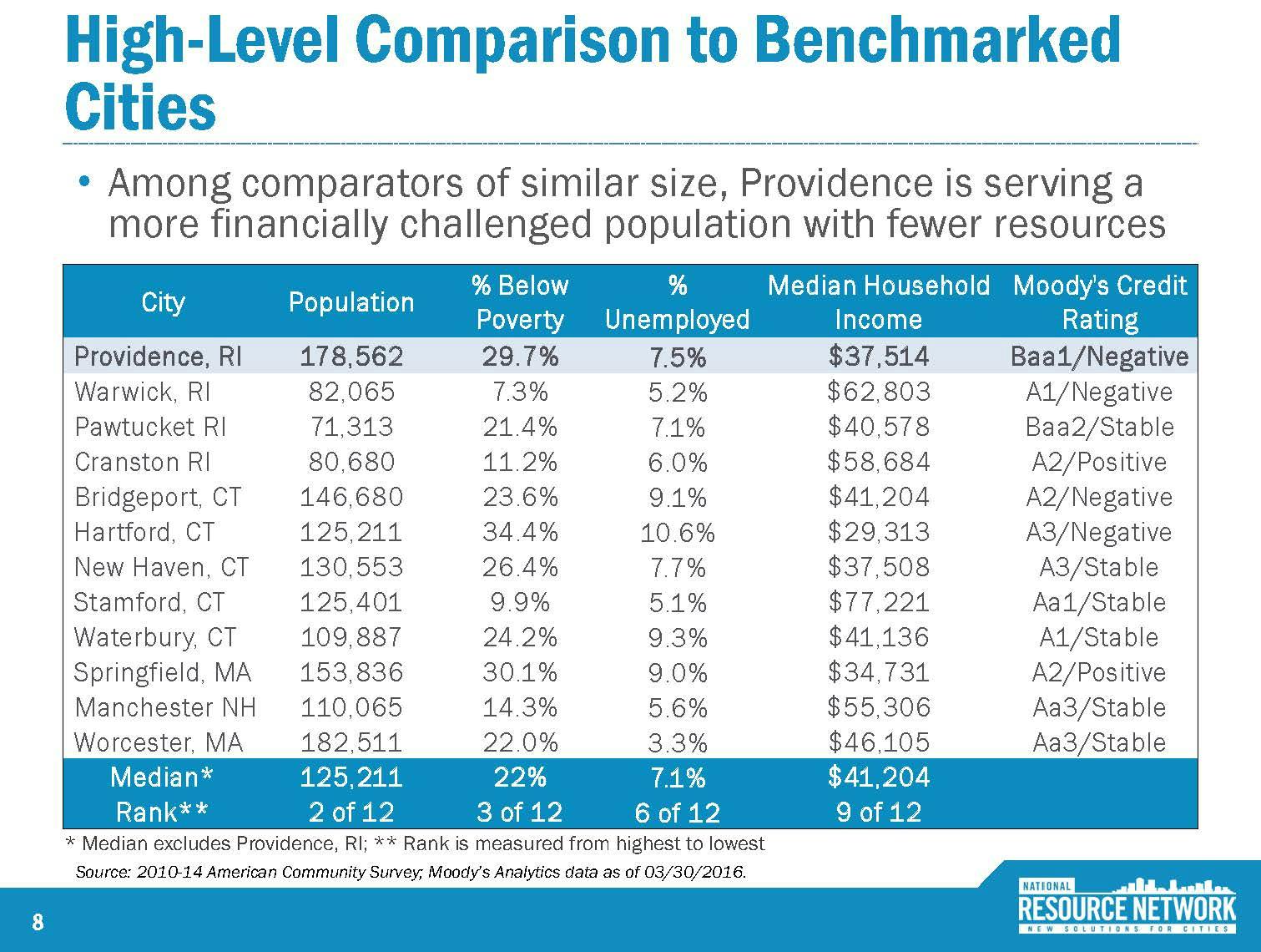 GET THE LATEST BREAKING NEWS HERE -- SIGN UP FOR GOLOCAL FREE DAILY EBLASTIt provides a valuable context that, so far as I know, hasn't been provided recently. The data shows us that while all similarly sized cities in New England have fiscal woes, Providence's problems are more severe.