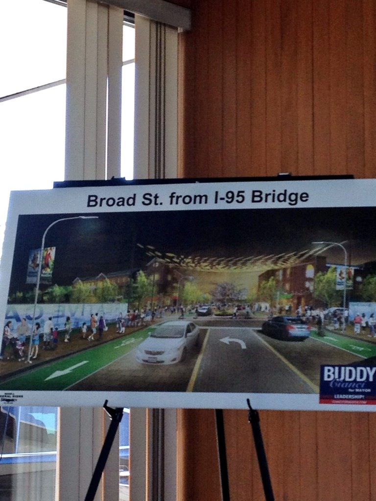 Cianci unveiled two renderings of proposed changes to Broad Street from the I-95 Bridge, as well as Broad and Public. The Cianci campaign paid for the renderings, which were done by Sakasi Associates.