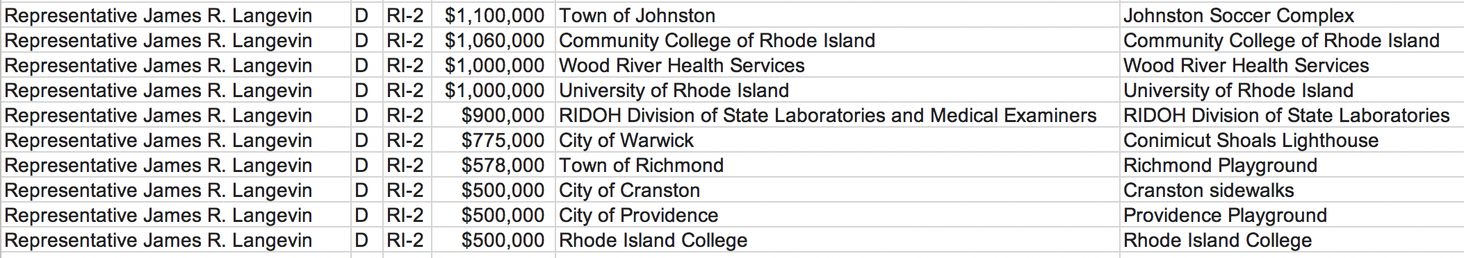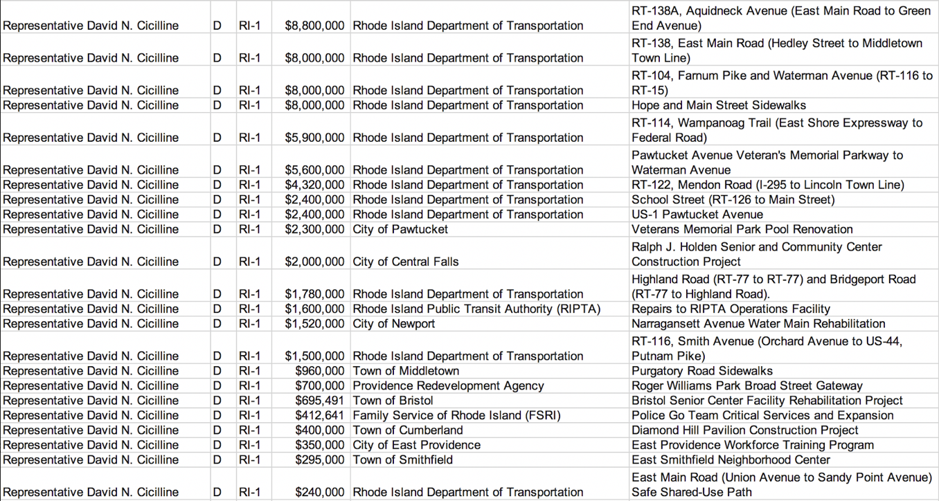In Rhode Island, Congressman David Cicilline has reportedly asked for over $68 million in earmarks; meanwhile, Congressman Jim Langevin has put in for just shy of $8 million.