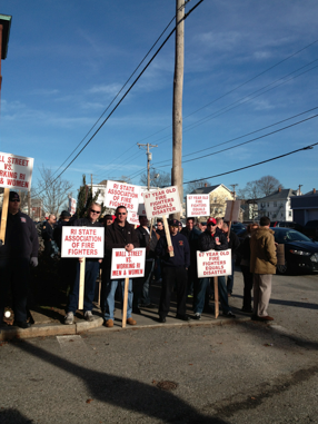 RI State Association of Firefighters outside event.Protesting the event were the Rhode Island State Association of Firefighters, who in October endorsed Providence Mayor -- and Democratic gubernatorial opponent -- Angel Taveras.