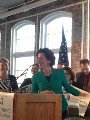 Rhode Island General Treasurer Gina Raimondo at campaign launch for Governor.Rhode Island General Treasurer Gina Raimondo officially kicked off her bid to be the next Governor of Rhode Island at Hope Artiste Village, to a packed crowd in the historic mill in Pawtucket.