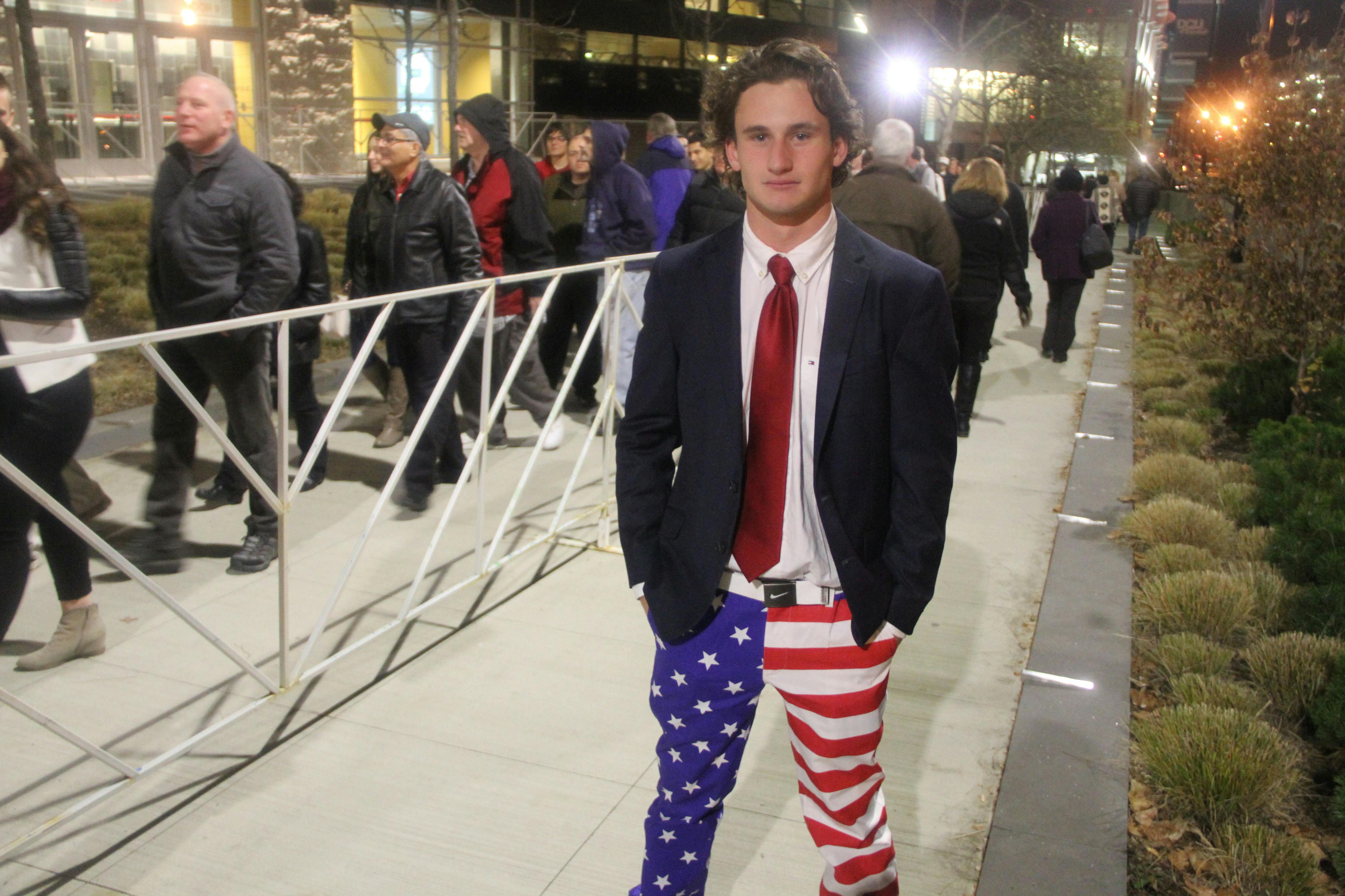 This young man's pants left no doubt. He is a big fan of two things—Donald Trump, and the United States of America.