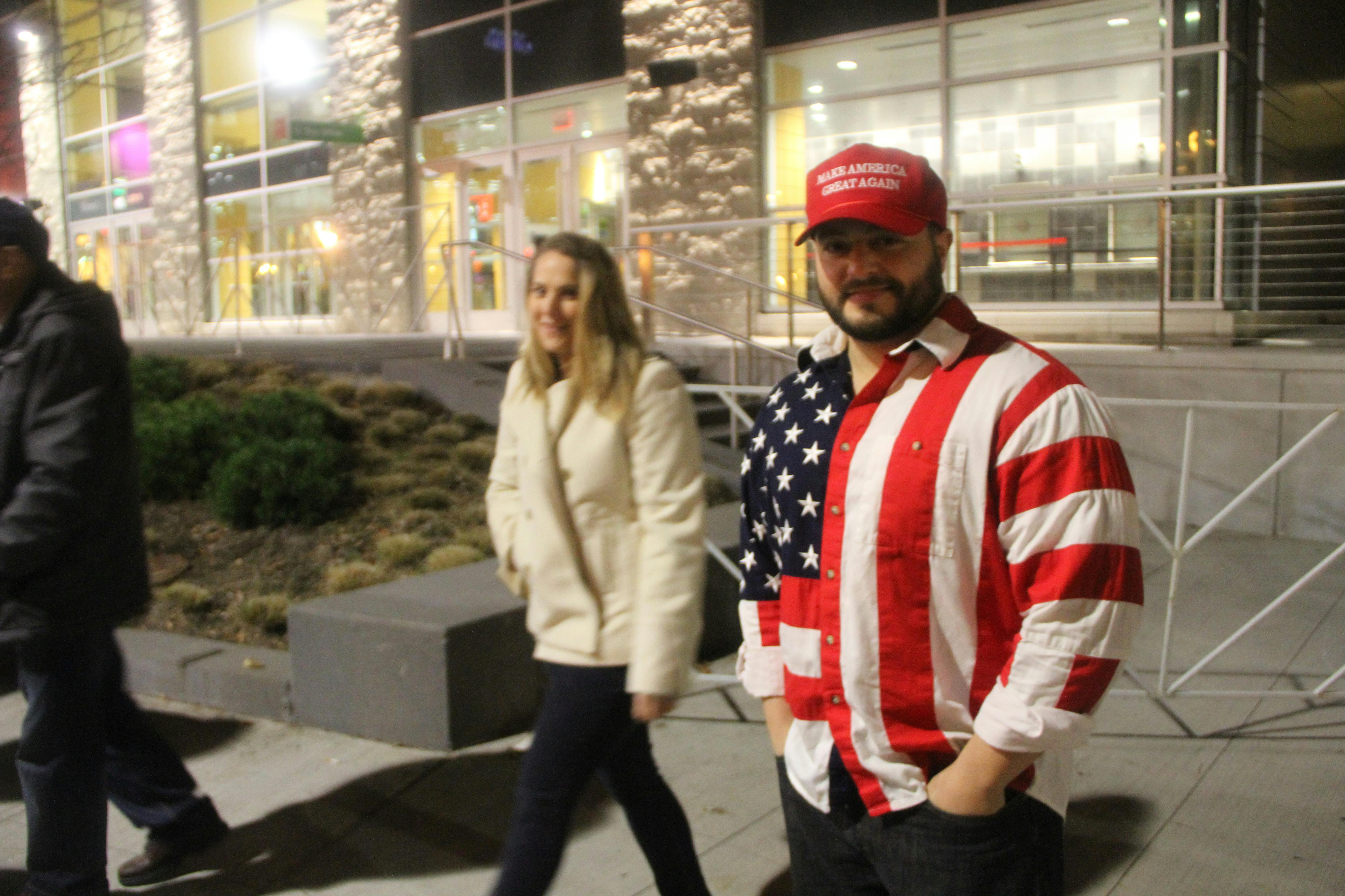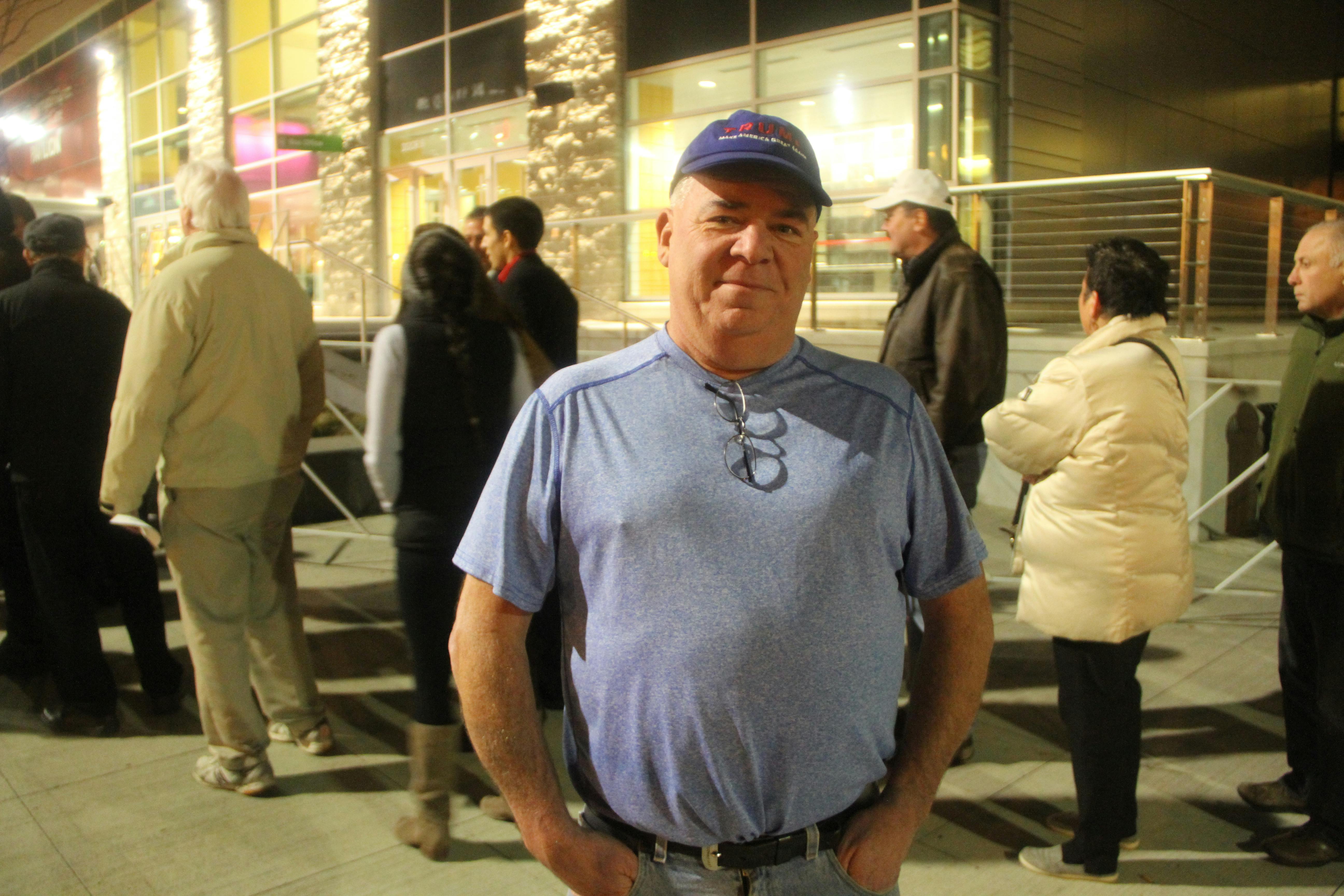 The cold weather didn't bother this Trump fan. He said he decided to purchase a Donald Trump-branded jacket or sweatshirt inside the DCU Center.