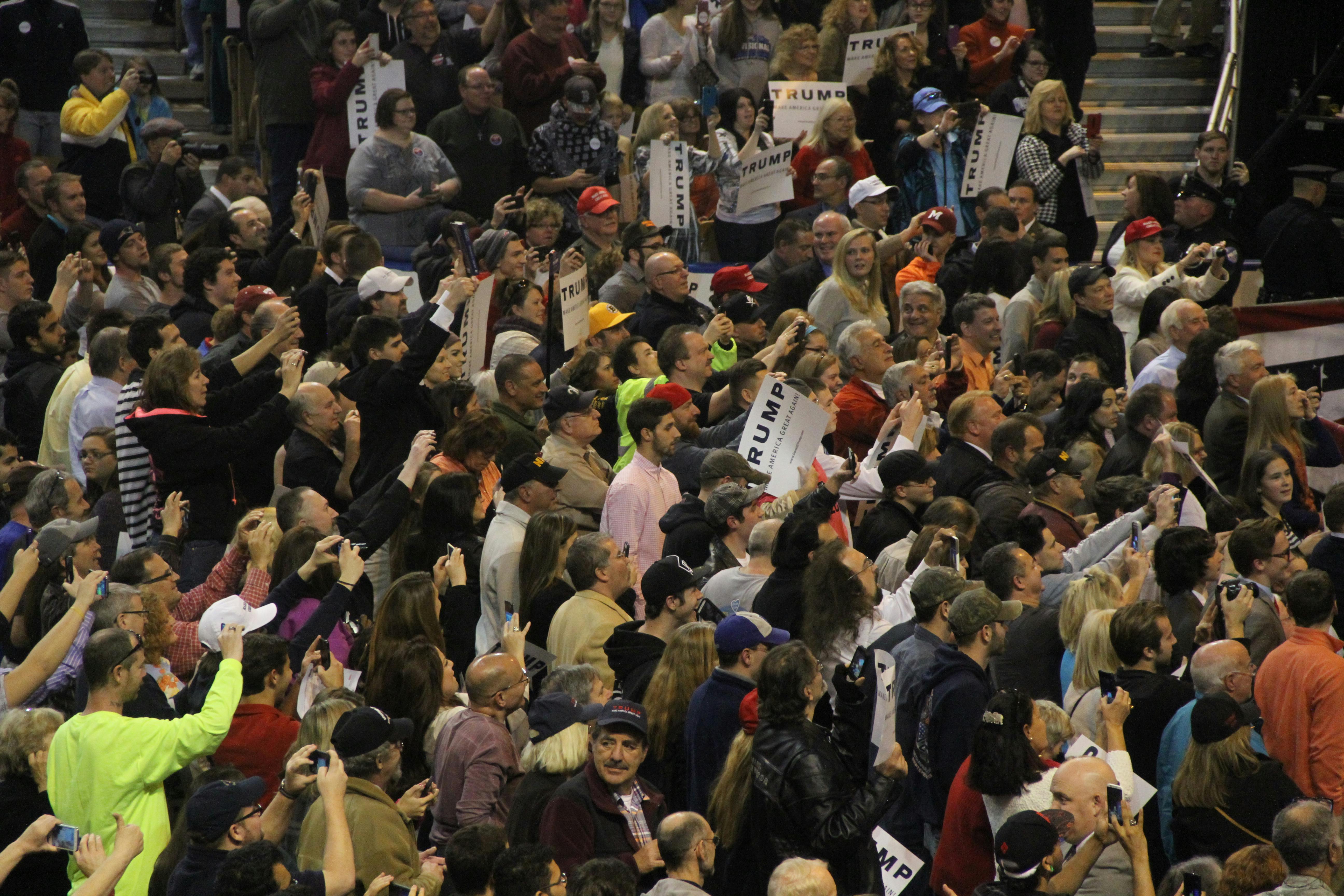 Standing room only—the DCU Center was nearly filled with supporters who got on their feet early and stayed there for most of Trump's hour-long speech.